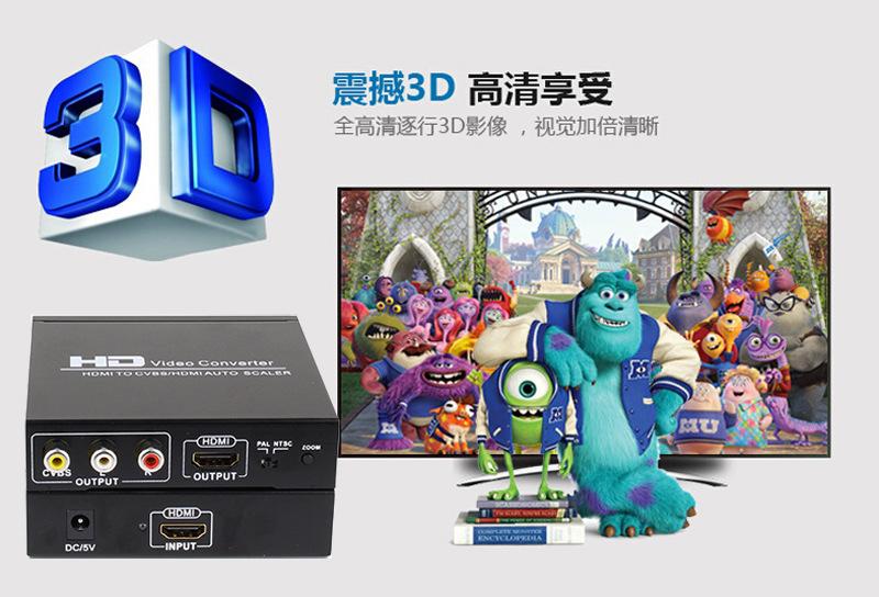 1. Converta sinais HDMI de alta definição em saída de sinal de vídeo 576I, 480I (PAL/NTSC) por meio do processamento de vídeo SCALE DOWN;