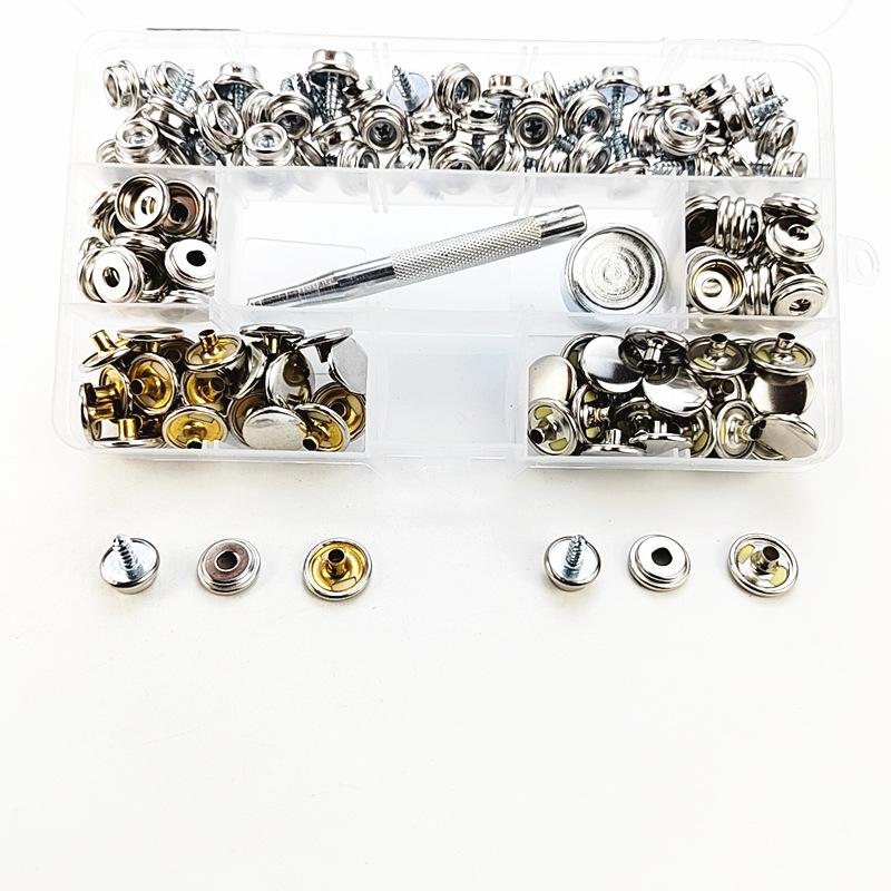 Quantidade: 500 conjuntos (25 conjuntos de pés amarelos para fivelas de superfície + 25 conjuntos de pés prateados para fivelas de superfície) + 2 ferramentas + 1 caixa de armazenamento