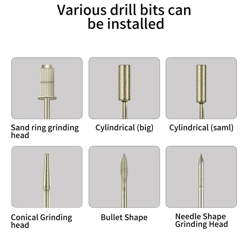 Usos: Utilizado para fazer unhas de cristal, polir unhas superficiais, produtos de higiene pessoal nas bordas. Este produto é fácil de usar e possui uma ampla gama de utilizações. Adequado para retificação de moldes, corte, polimento, fabricação odontológica, retificação de dentaduras, processamento de artesanato, escultura, retificação, polimento, diversas artes de unhas, beleza de joias e outras operações.