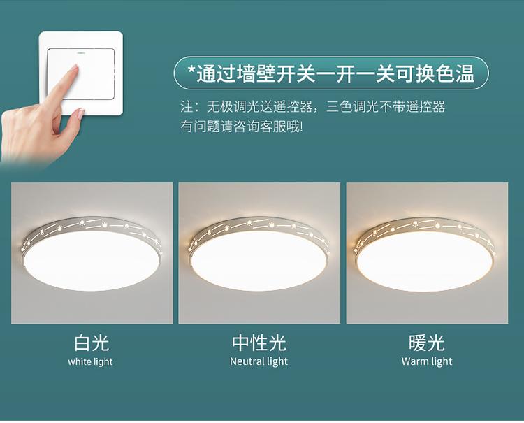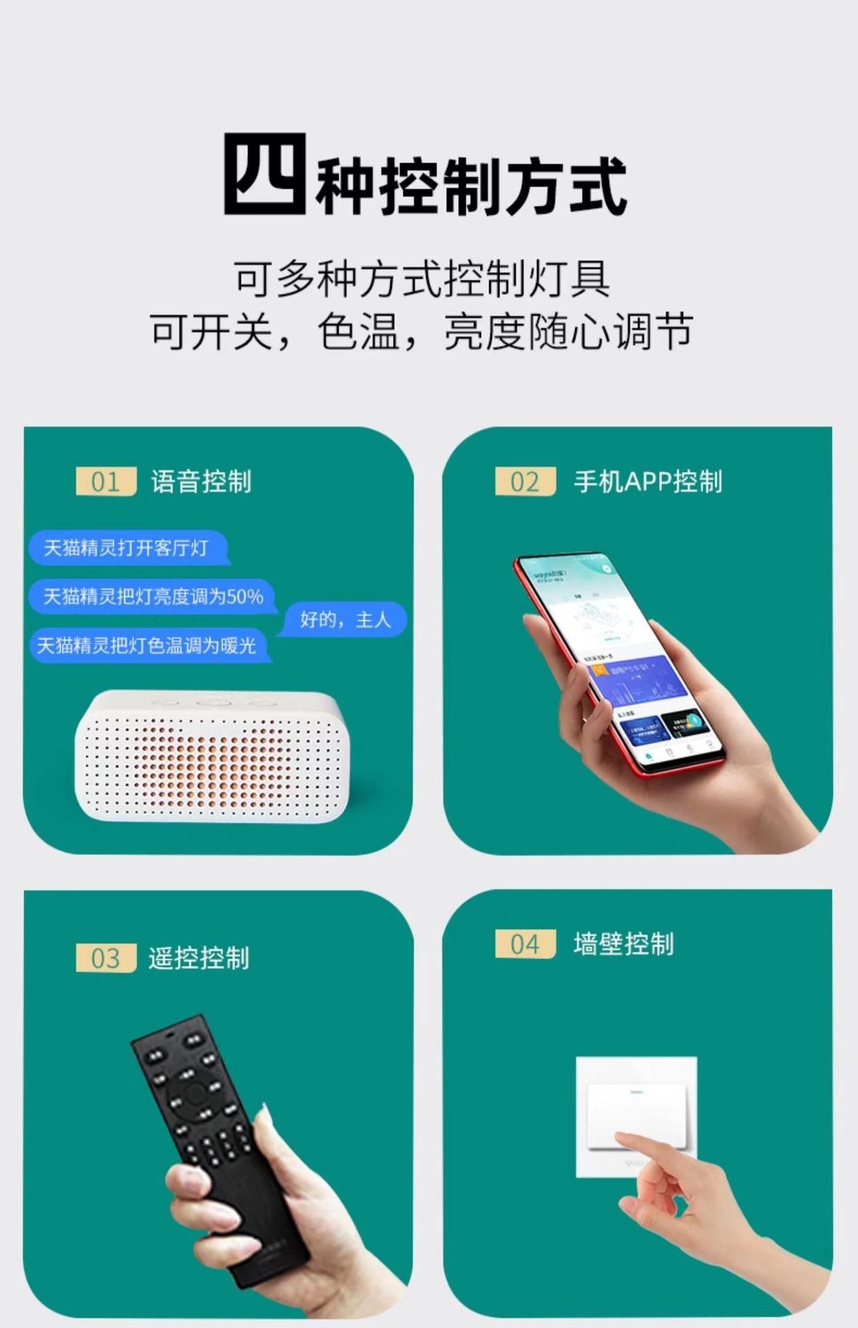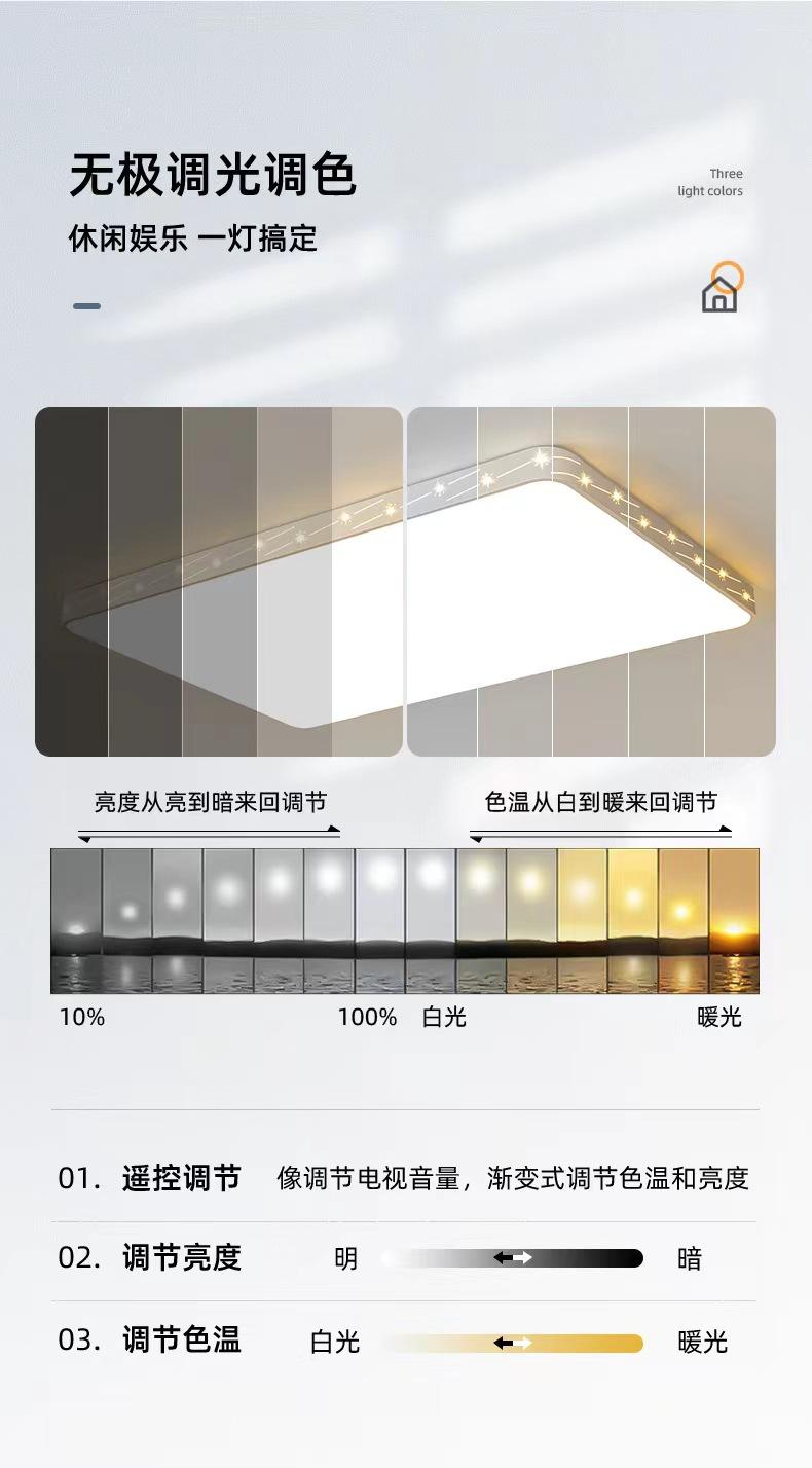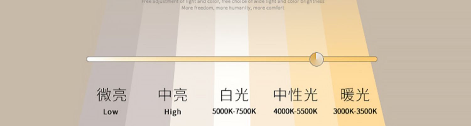 Escurecimento infinito e ajuste de cor: o controle remoto é usado para controlar o gradiente da luz branca à luz quente de 0,15 W a grande potência. Ele pode ajustar vários tipos de temperaturas de cor e também inclui uma função de ajuste de três cores.