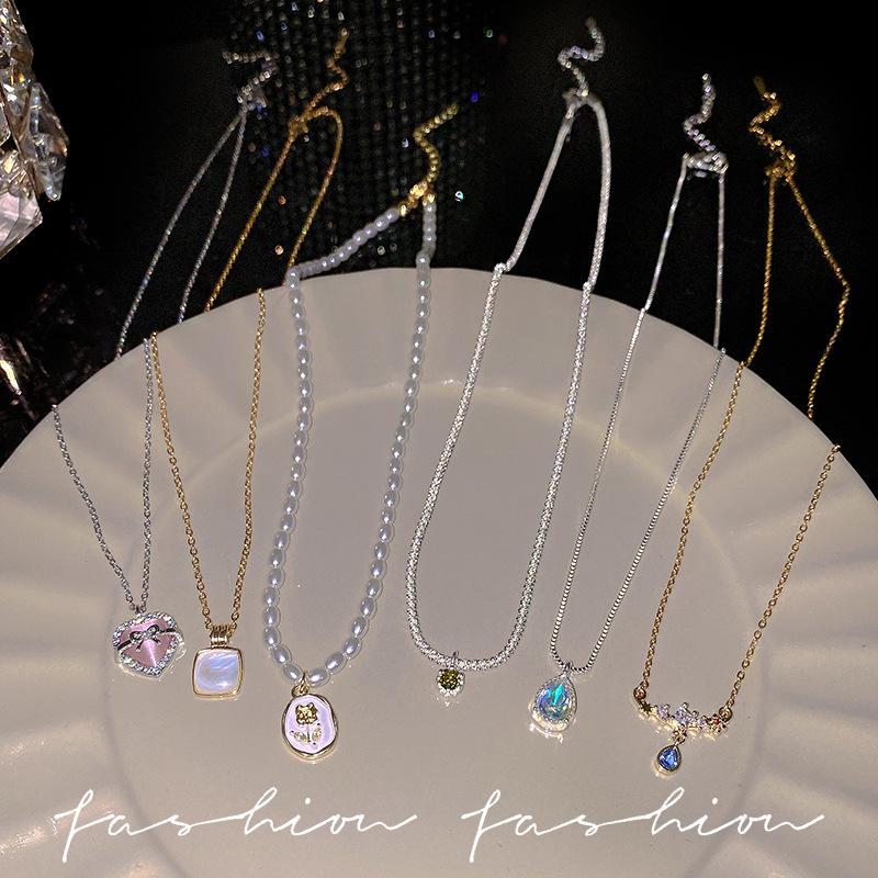 Coreano ins estilo pérola zircão titânio colar de aço feminino nicho versátil high-end clavícula corrente jóias de fadas atacado