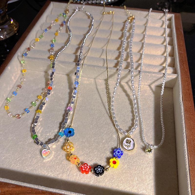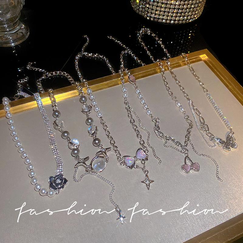 Ins estilo colar de pérolas feminino versátil nicho design high-end luz luxo clavícula corrente amor pingente jóias atacado