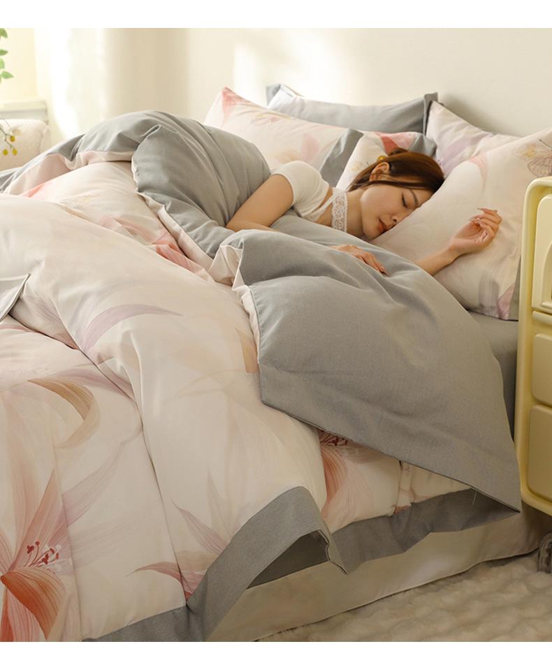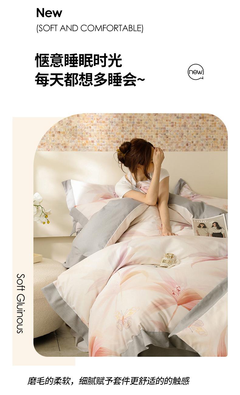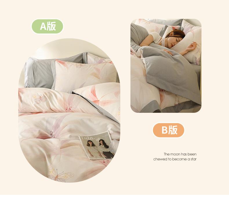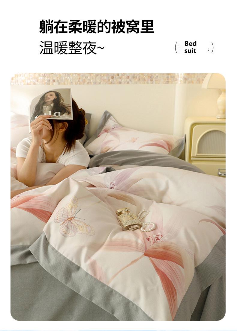 Juego de Franela de Cuatro Piezas para Otoño e Invierno Algodón Poliéster Espesado Cálido Sencilla Ropa de Cama Estampada Sábana Encimera Funda Nórdica Textiles para el Hogar Nantong
