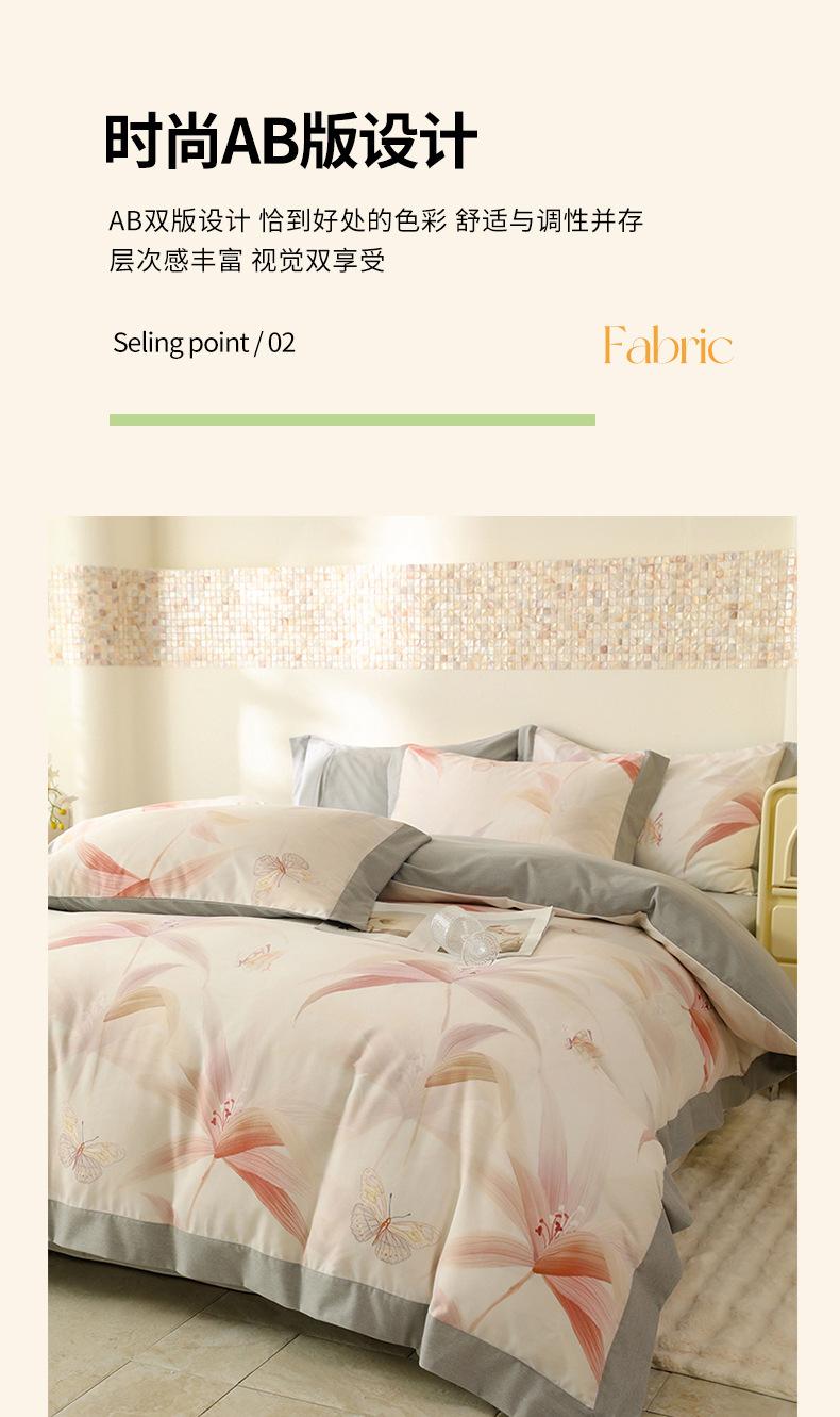 Juego de Cuatro Piezas de Algodón Peinado de Fibra Larga de los 60s Algodón Puro Estampado Sábana Bajera Ajustable de Borde Ancho Funda Nórdica Ropa de Cama 100% Algodón Textiles para el Hogar Nantong