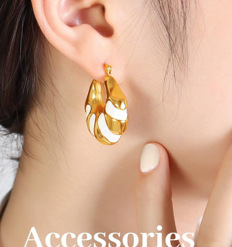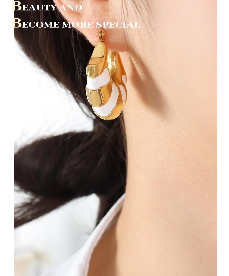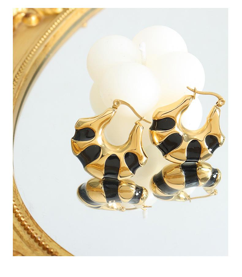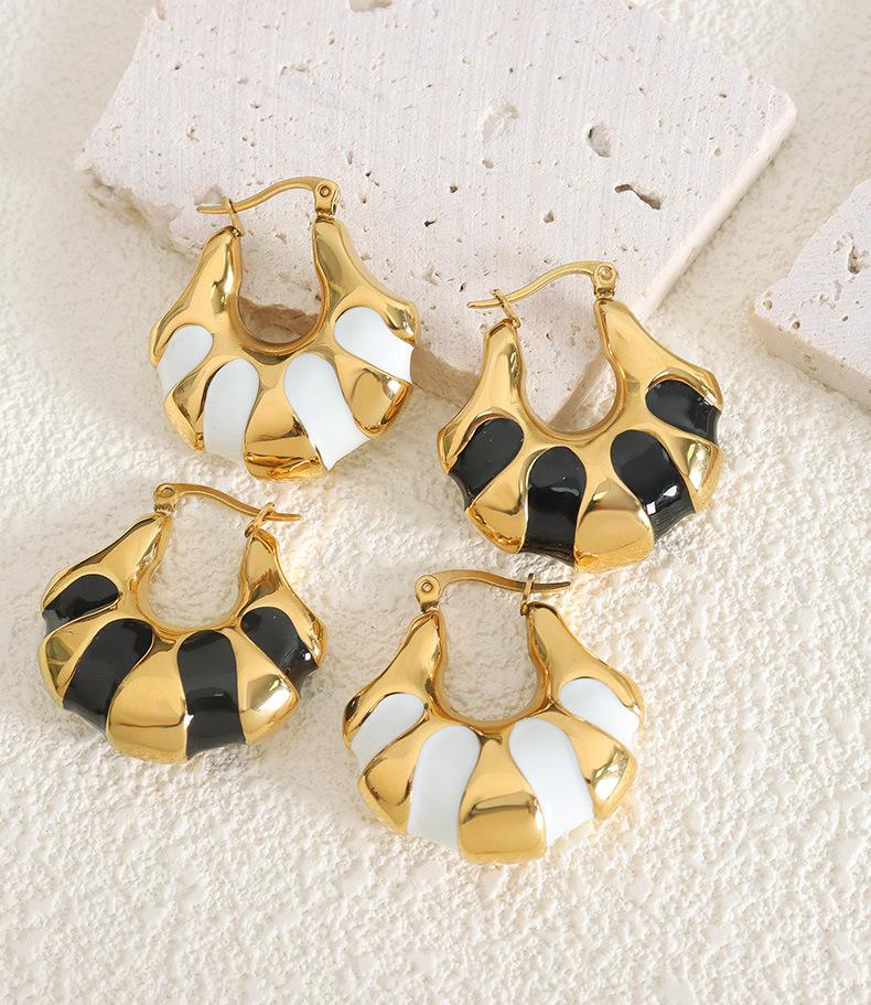 Europeu e Americano ins Estilo personalizado Internet Celebridade Mesmo Estilo Brincos Titânio Aço chapeado 18K Ouro Preto e Branco Drop Glue Pão C- Brincos de Moda em forma de
