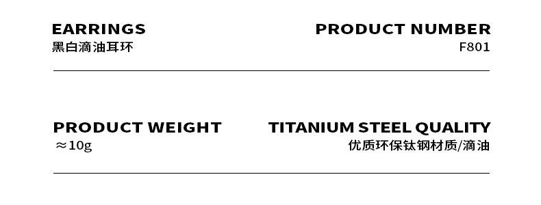 F801-Gold White Drop Oil Earrings, F801-Gold Black Oil Drop Earrings
