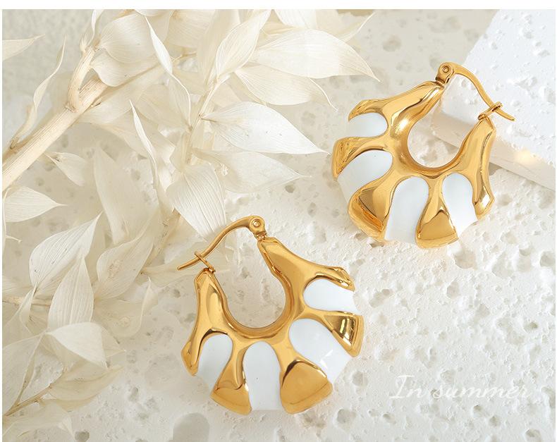 F801-Gold White Drop Oil Earrings