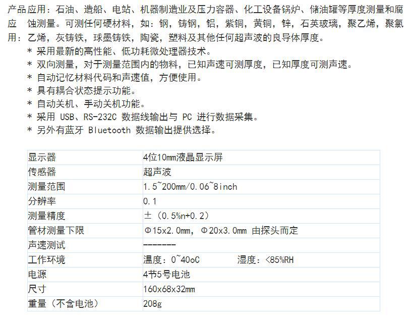 * Tiene una gran potencia de transmisión y alta sensibilidad de recepción de banda ancha. Puede adaptarse a sondas de diferentes frecuencias, por lo que puede medir superficies rugosas severamente corroídas, superficies pintadas e incluso algunos hierros fundidos grises. Su rango de aplicación cubre casi todas las industrias industriales.
