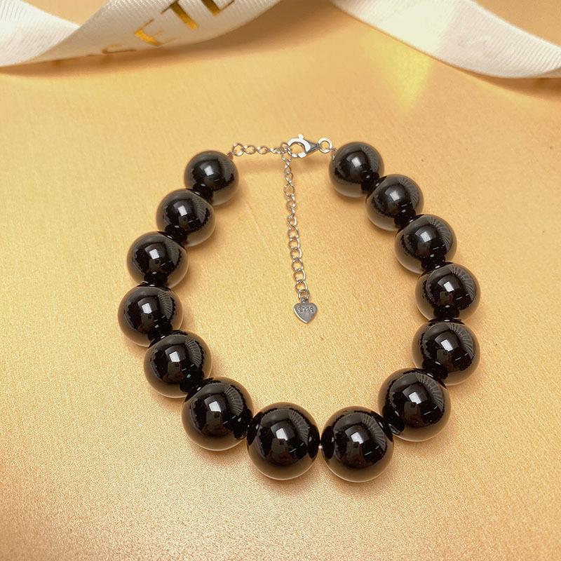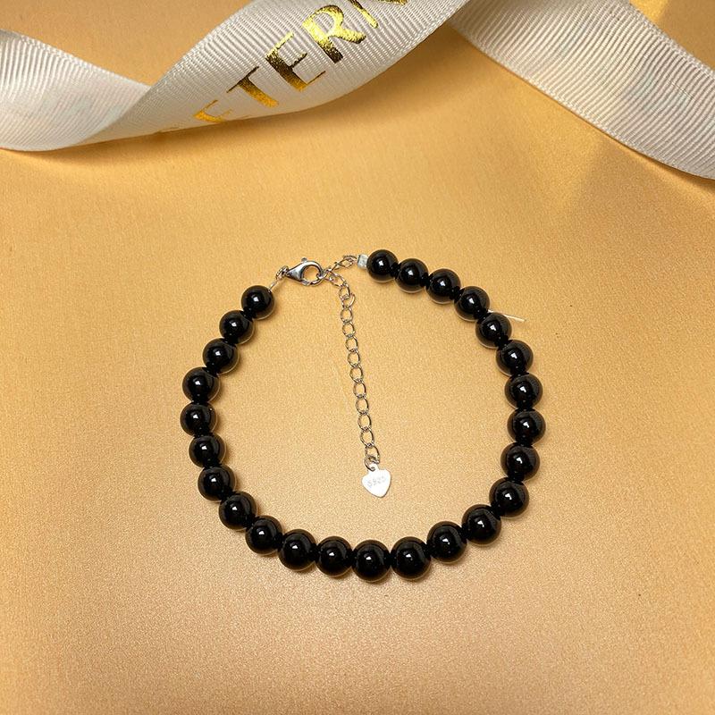 [Material do bebê]: peça de metal 925 prata esterlina,ágata preta natural