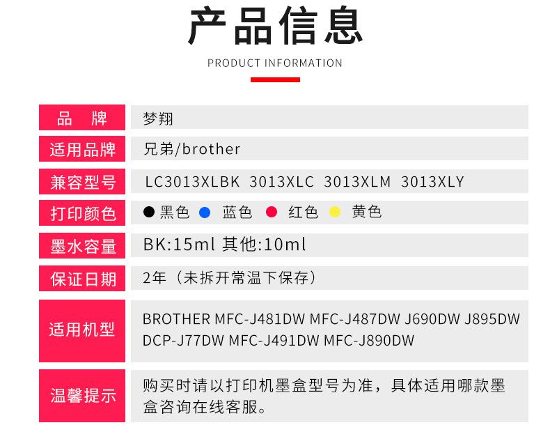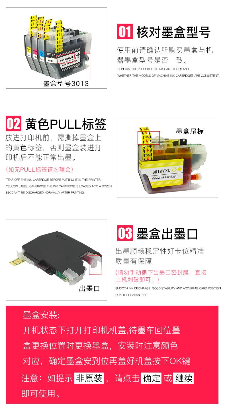 Cartuchos compatíveismodelo: LC3011BK LC3011C LC3011M LC3011Y LC3013XLBK LC3013XLC LC3013XLM LC3013XLY