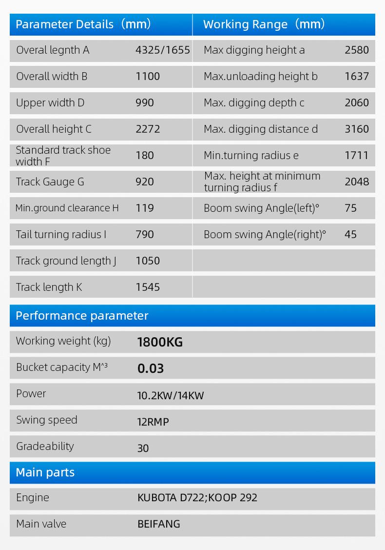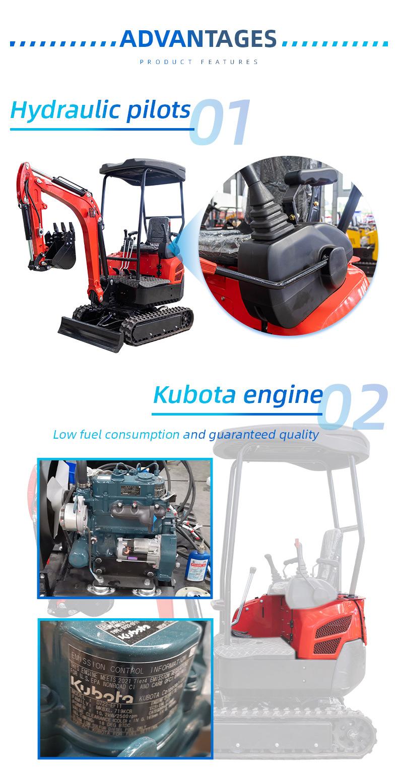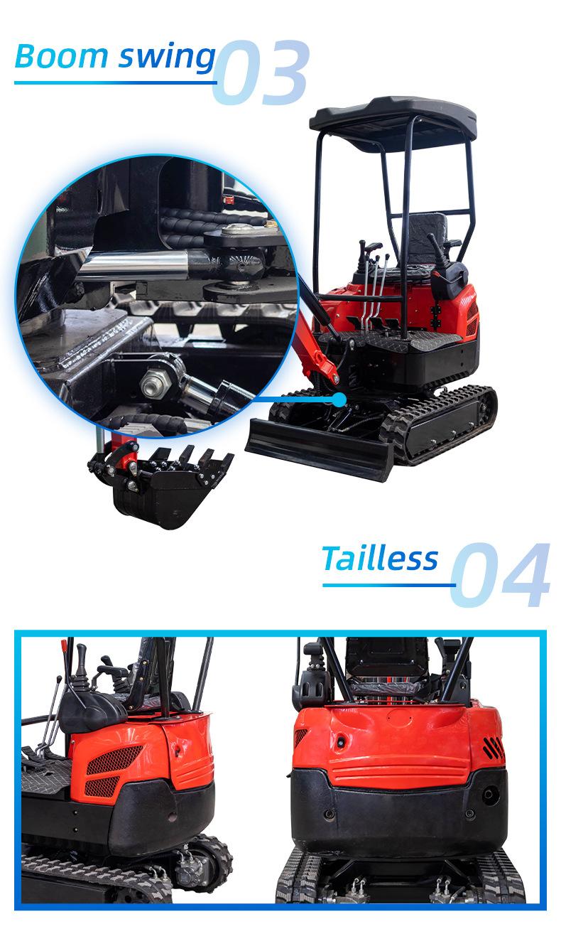 Exporte escavadeiras pequenas de 0,8 a 3 toneladas, potência Euro V e EPA opcional, abertura de valas e perfuração, adequadas para pomares, fazendas senhoriais, construções de renovação, etc., martelo rompedor de suporte opcional, sem-fim, agarrador de madeira, etc. para ser utilizado para diversos fins, apoiando a exportação para Europa, América do Norte e outros países.