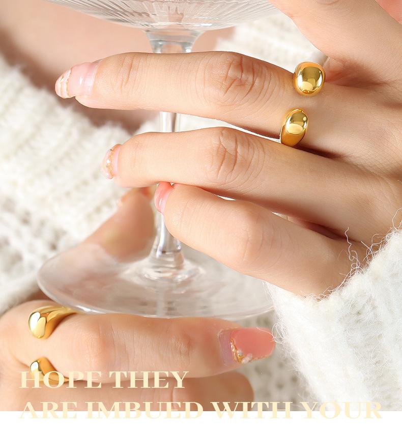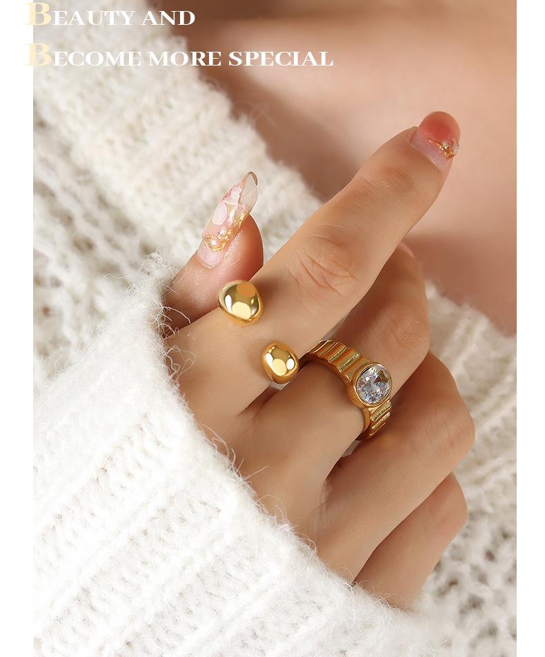 Compre Estilo europeu e americano estilo ins, anel simples, anel geométrico simples do dedo indicador anel de titânio chapeado 18K ouro joias anel aberto no atacado no Joom.pro