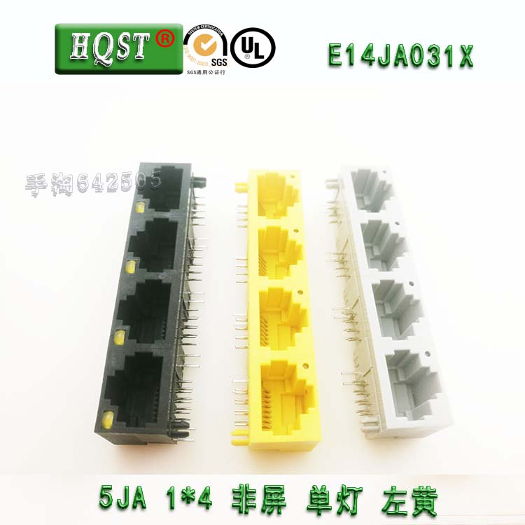 Este módulo conector RJ45 1 * 4 produto de 90 graus 5JA tipo longo de 15,75 mm, sem blindagem, com luz amarela esquerda única (pode ser personalizado), sem filtro de rede,Soquete de porta de rede com cabeça de cristal.