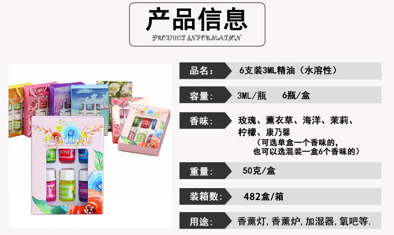 Atacado 6 3ML Óleo Essencial de Aromaterapia Multiuso Fragrância Solúvel em Água Líquido Umidificador Aromaterapia Líquido Completo Inglês Transfronteiriço