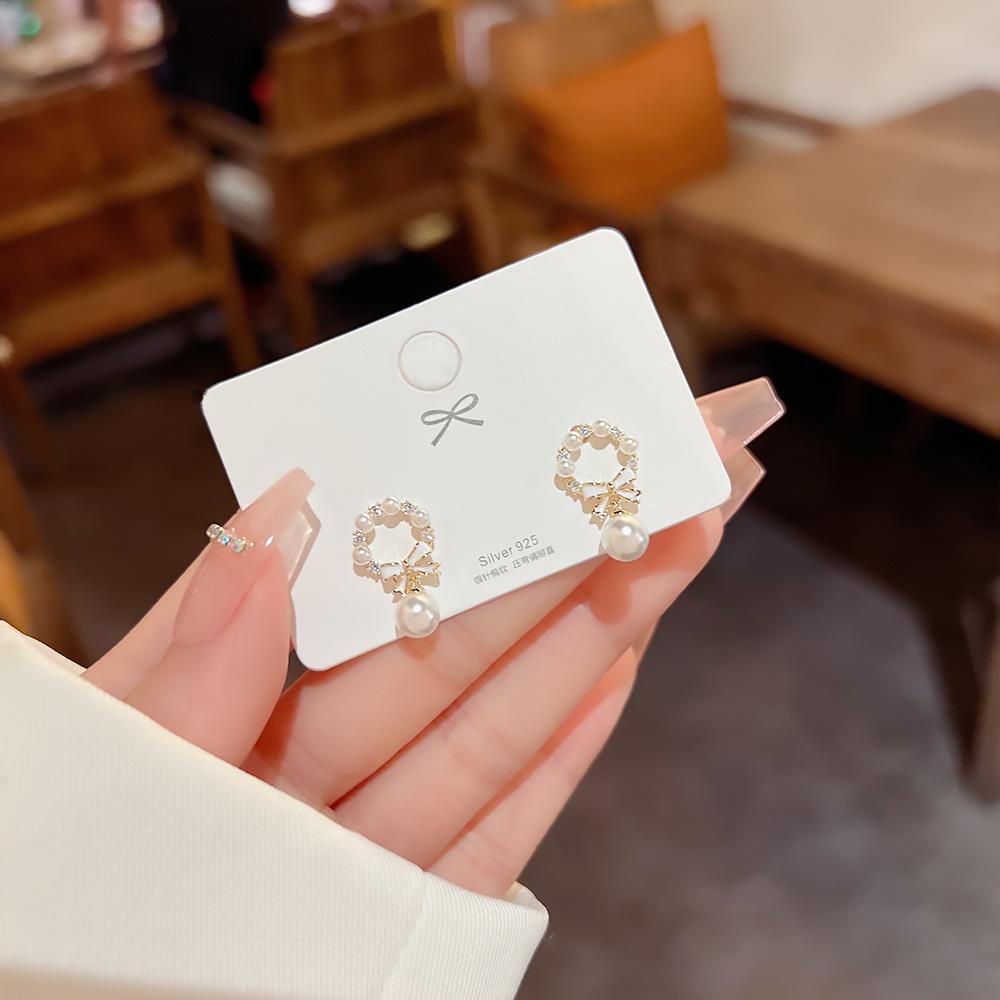 ![]() Pendientes de perlas de moda con aguja de plata S925, nuevos y exquisitos pendientes de nicho para mujer, pendientes de hadas de celebridades de Internet de alta gama, al por mayor