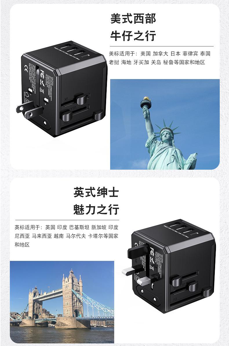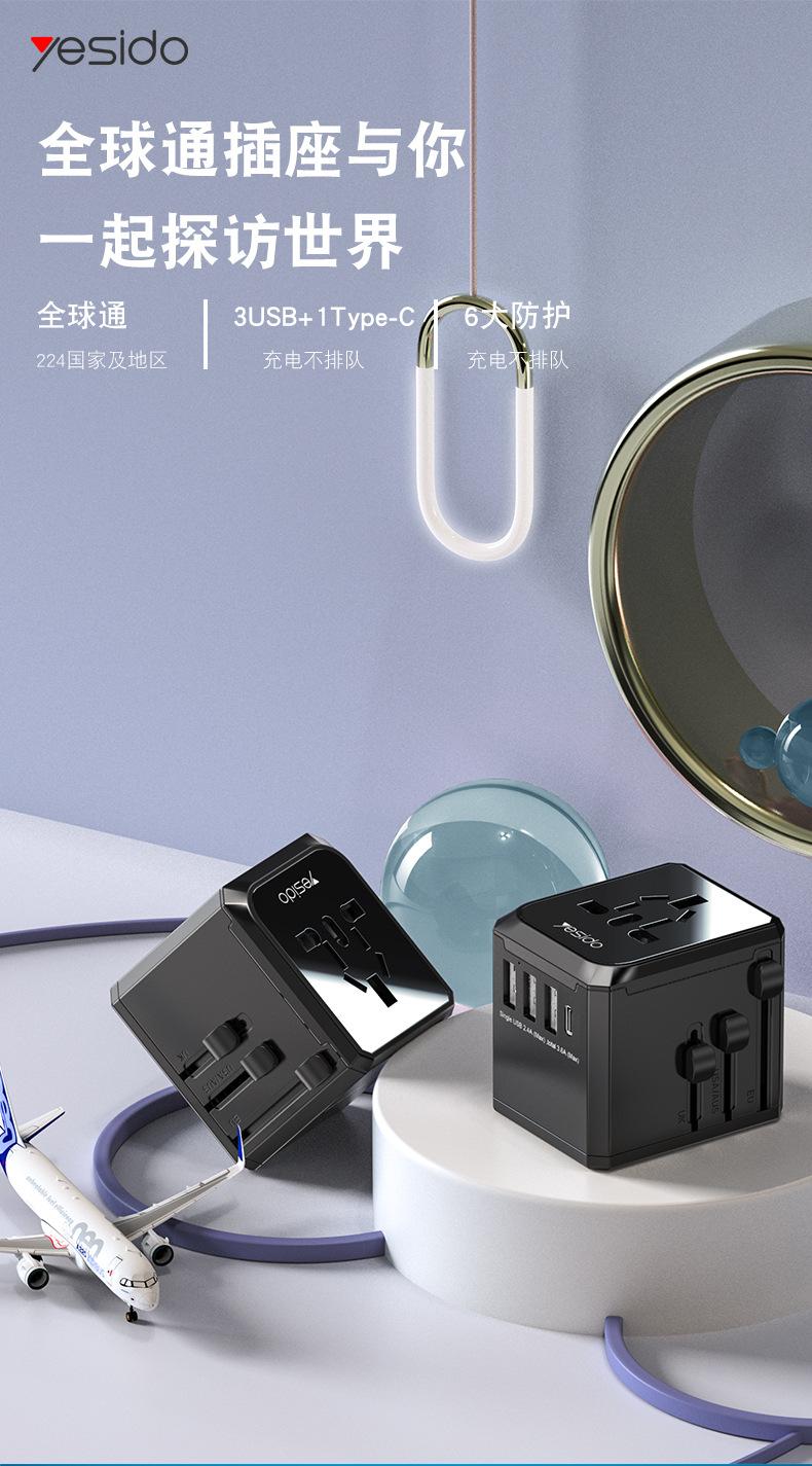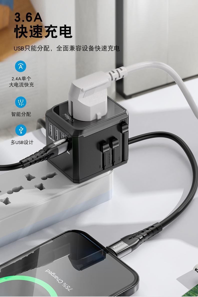 3USB+TC(3.6A Max)Carregador de viagem universal global