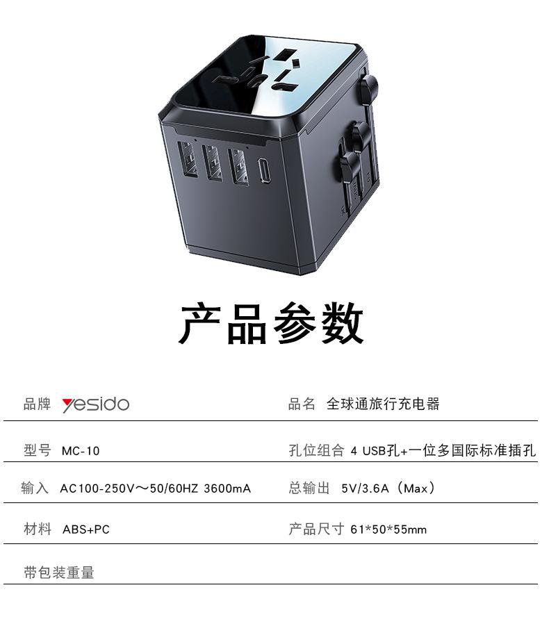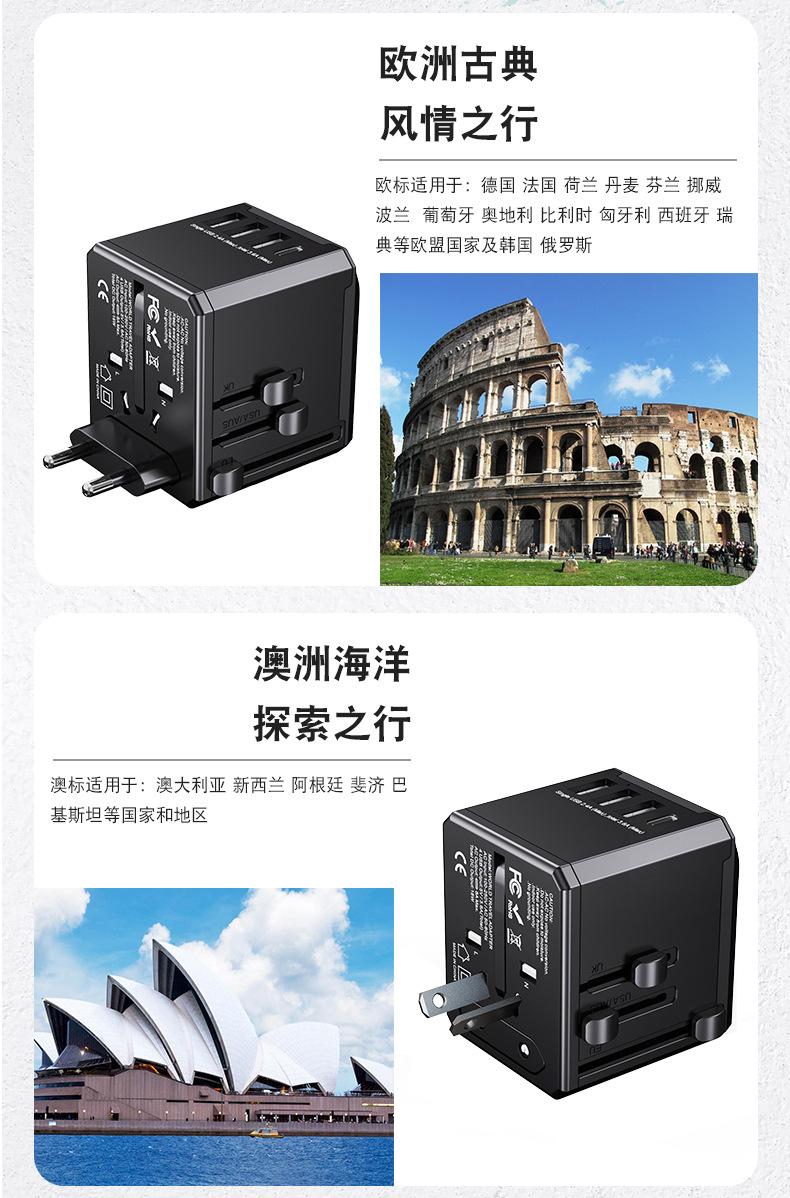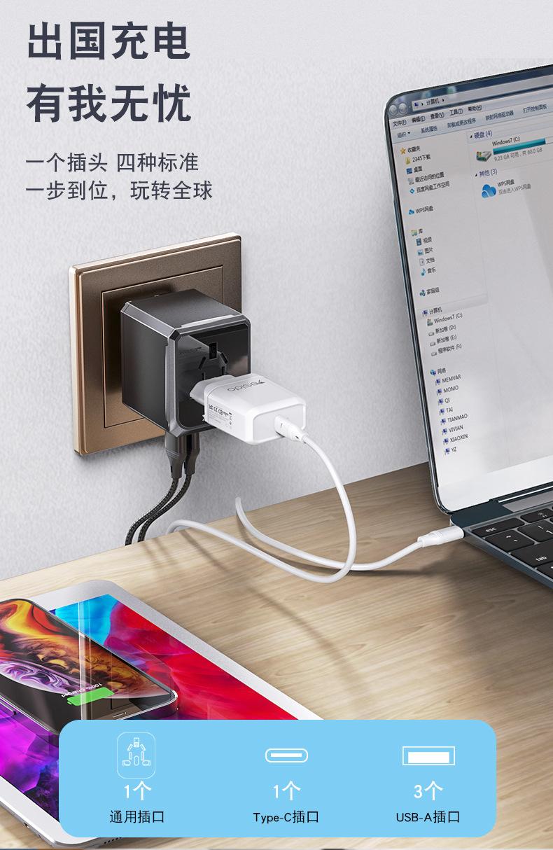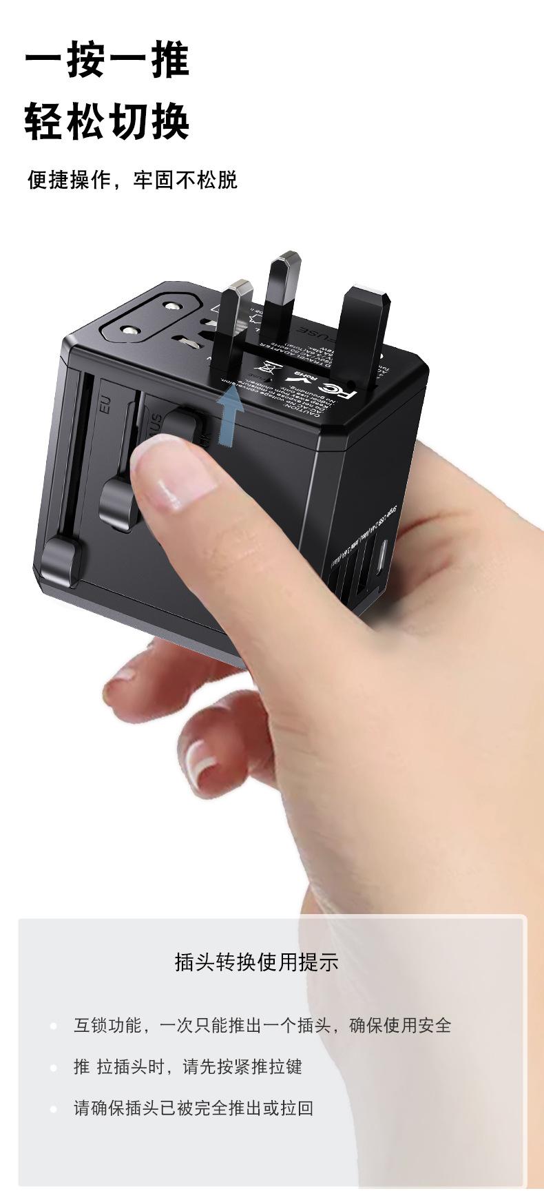 3USB+TC(3.6A Max)Carregador de viagem universal global