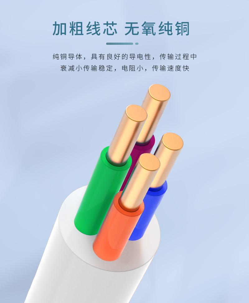 ■Material do condutor: Fio de cobre redondo macio sem oxigênio com pureza de 99,99%, em conformidade com o padrão YD/T 1019-2001Fio de cobre redondo macio sem oxigênio,