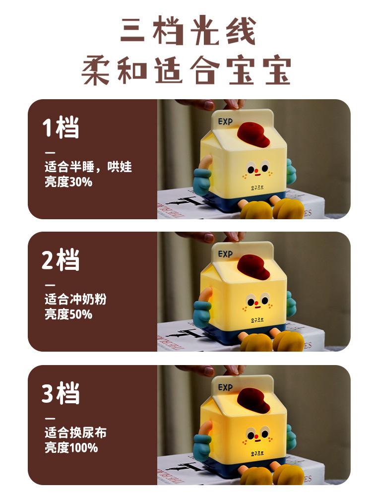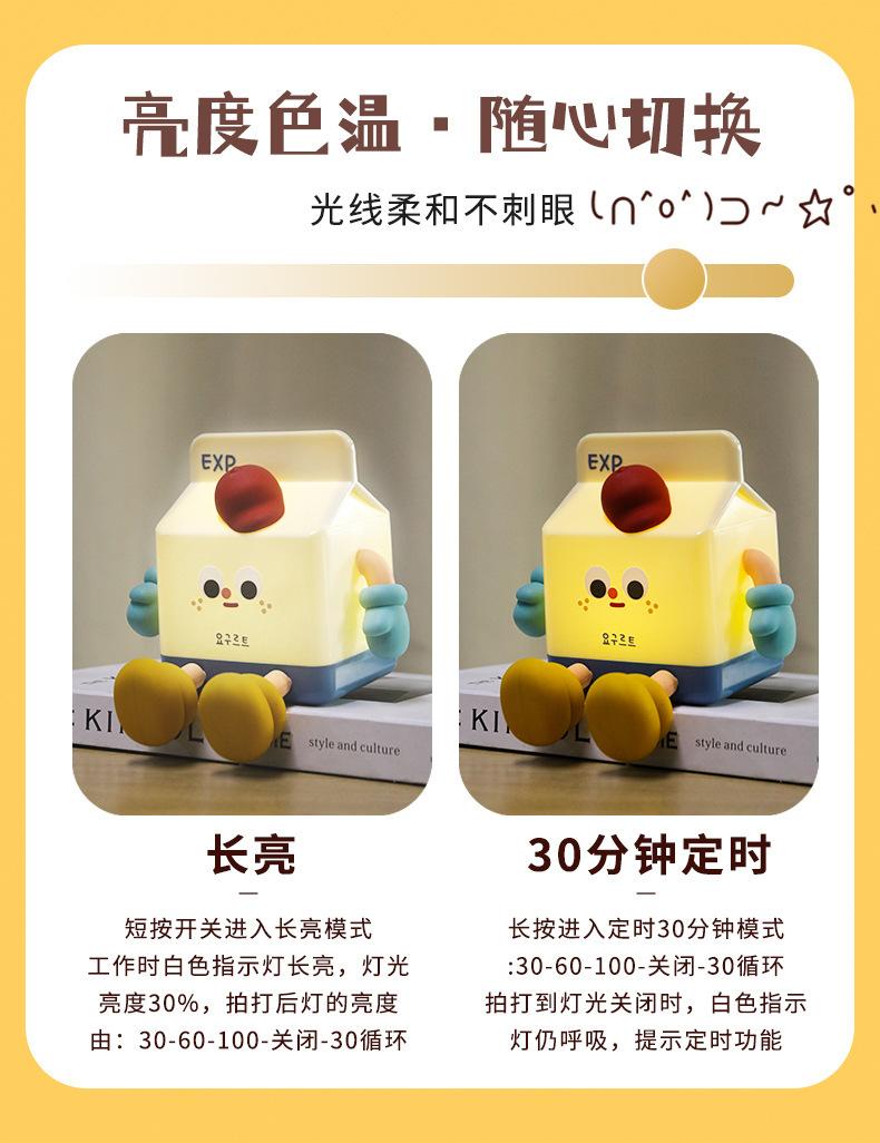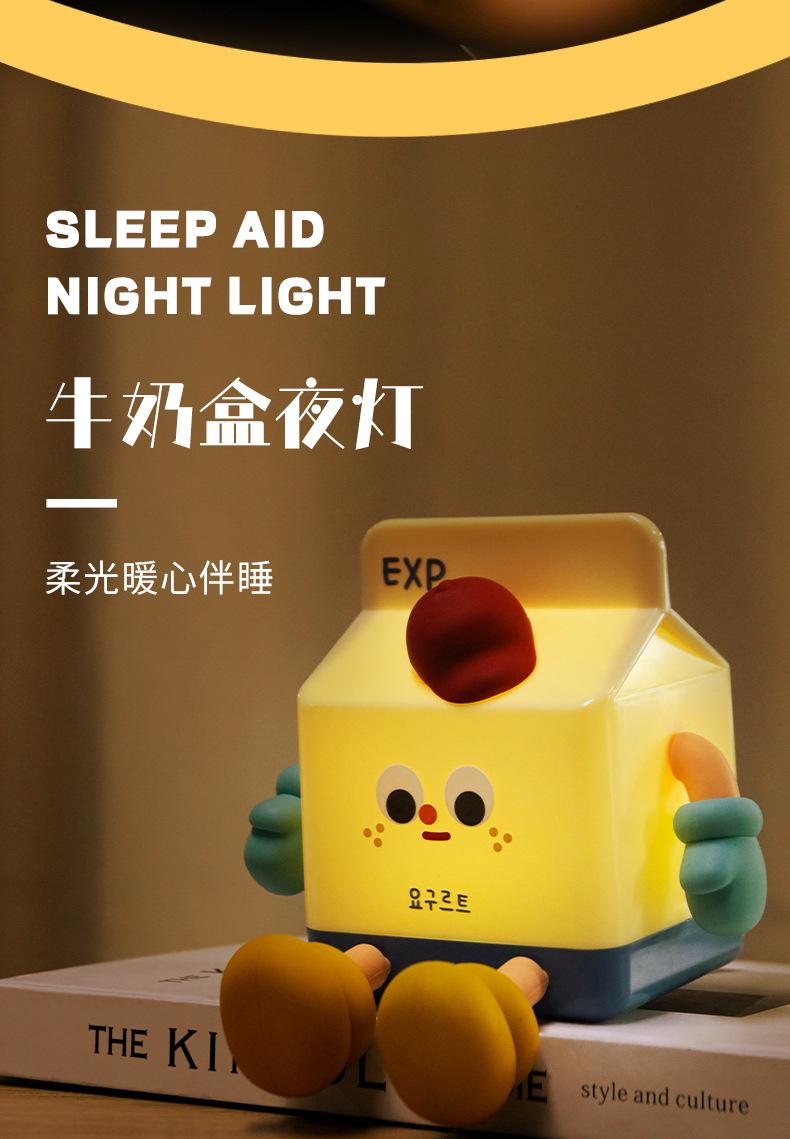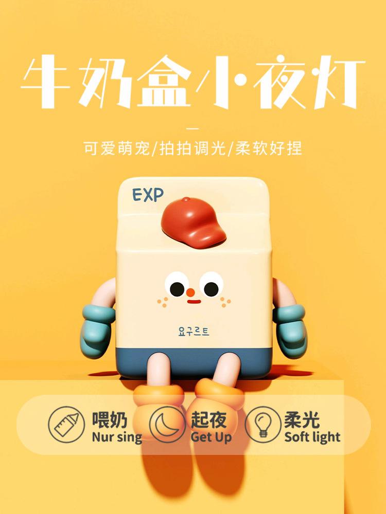 Criativo caixa de leite luz noturna carregamento usb lâmpada cabeceira net celebridade quarto temporizador sono bonito pat silicone lâmpada