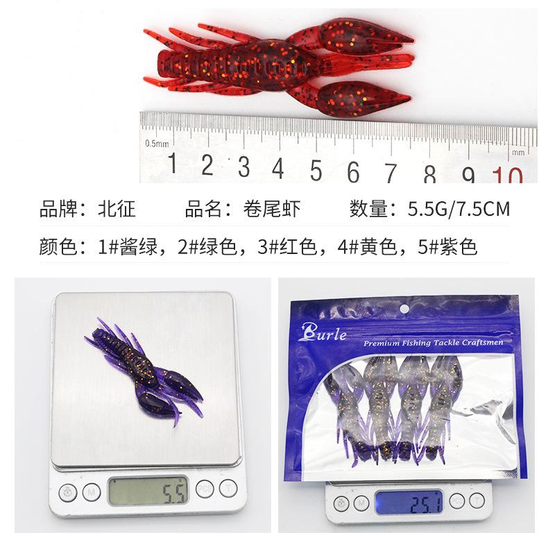 Señuelo Luya señuelo blando 5.5g7.5cm cangrejo de río camarón martillo señuelo blando camarón de cola rizada señuelo de camarón señuelo falso biónico camarón