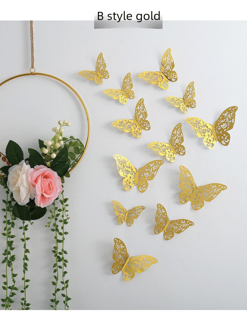 Compre Adesivos de Parede de Borboleta Recortados Estéreo 3D da Amazon Decoração de Parede Layout de Parede da Sala de Estar Adesivos Criativos com Textura Metálica no atacado no Joom.pro