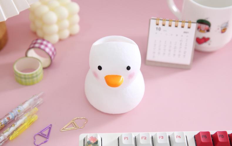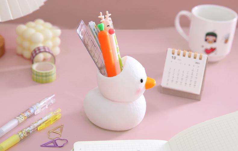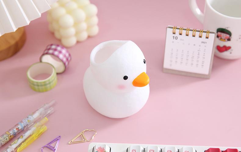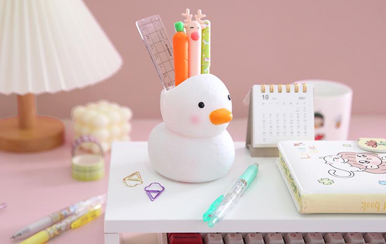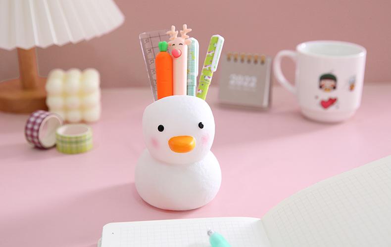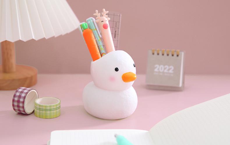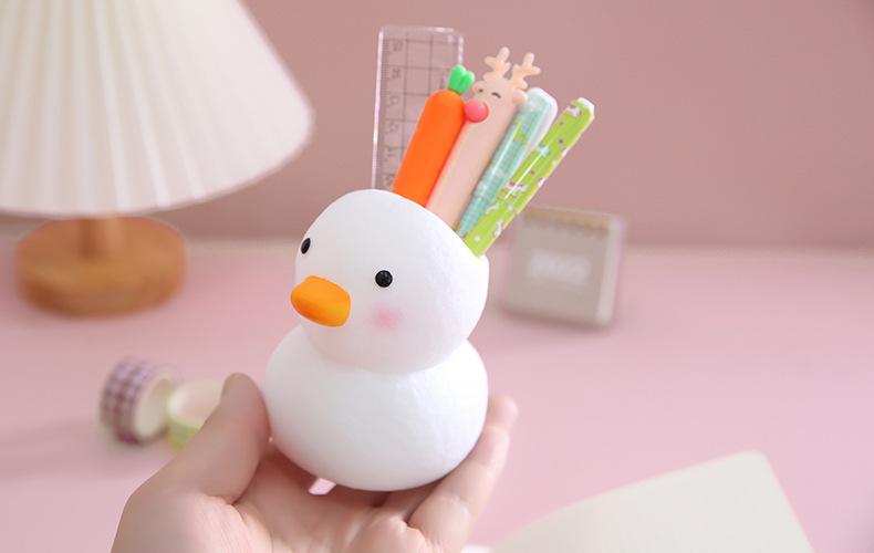 Lembrete caloroso: Este é um porta-canetas de patinho fofo, com formato fofo e fresco, feito de vinil, anti-queda e durável, bonito e barato, altamente recomendado pelos estudantes!