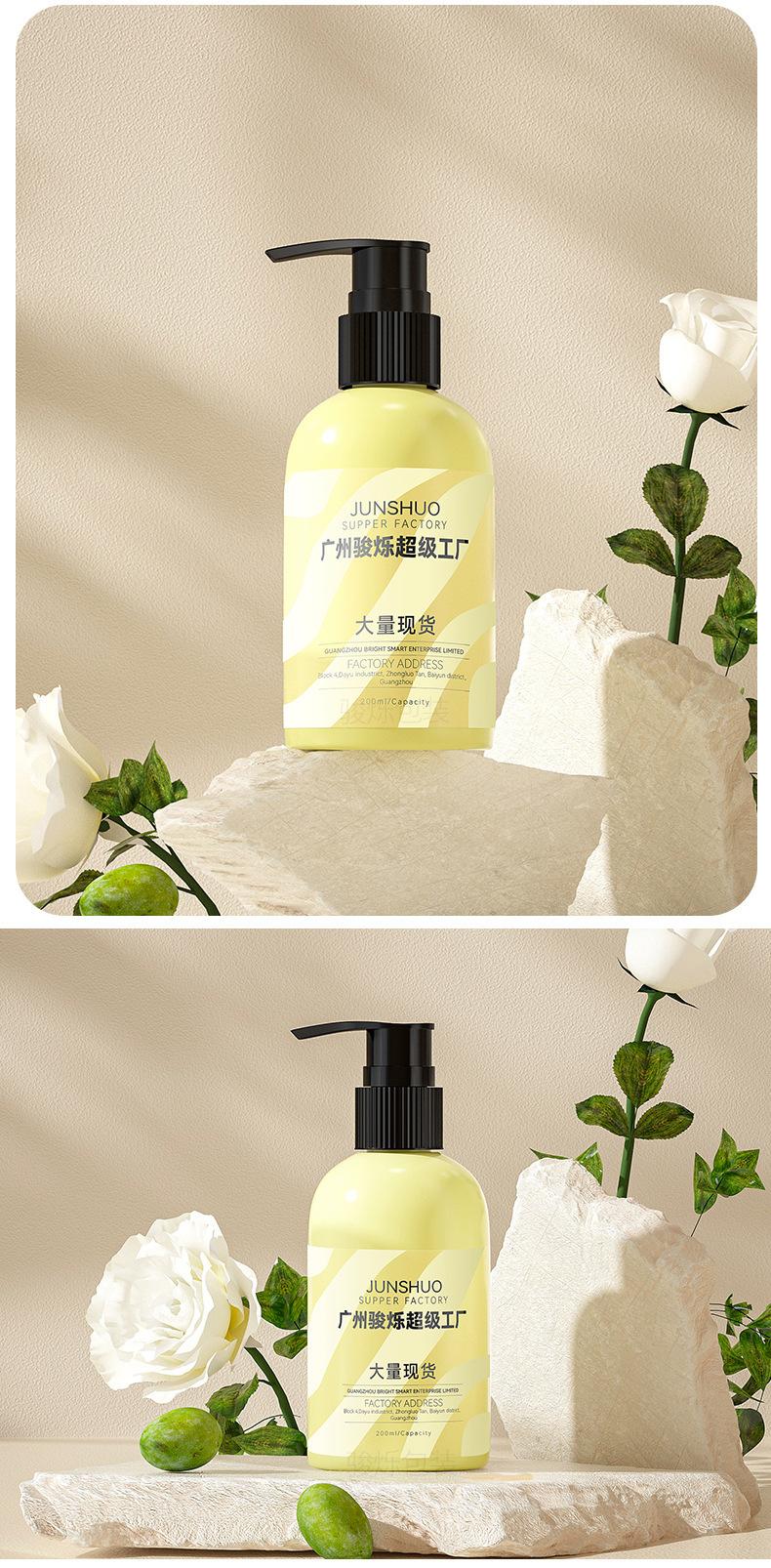 Frasco Amarelo de Ombro Redondo de 200ml com Bomba para Loção Corporal Embalagem com Rótulo de 24 Dentes Material Plástico PET Frasco para Condicionador