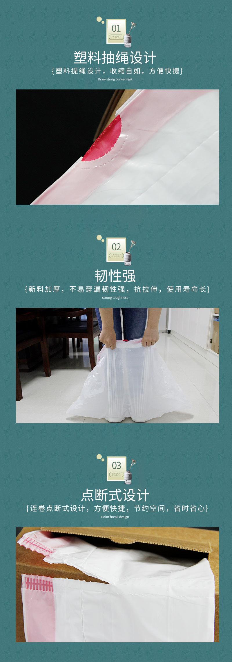 Características: fechamento automático, fechamento automático da corda, facilitando a coleta do lixo, economizando esforço e não é fácil sujar as mãos; forte resistência, novo material PE não é fácil de vazar; a corda é firme, mesmo que você rasgue a corda com força, ainda não haverá rachaduras na abertura da corda, então você não precisa se preocupar em levantar o lixo A corda quebra