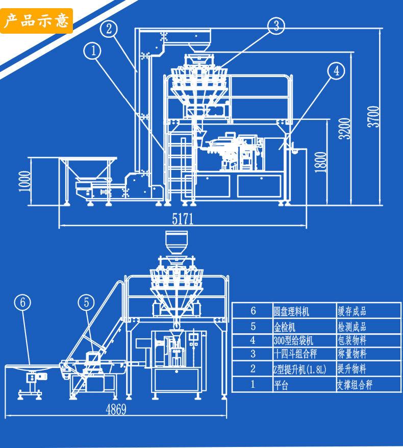 1. Conclusão totalmente automática de alimentação, pesagem, enchimento, impressão de data, saída de produto acabado, etc.;