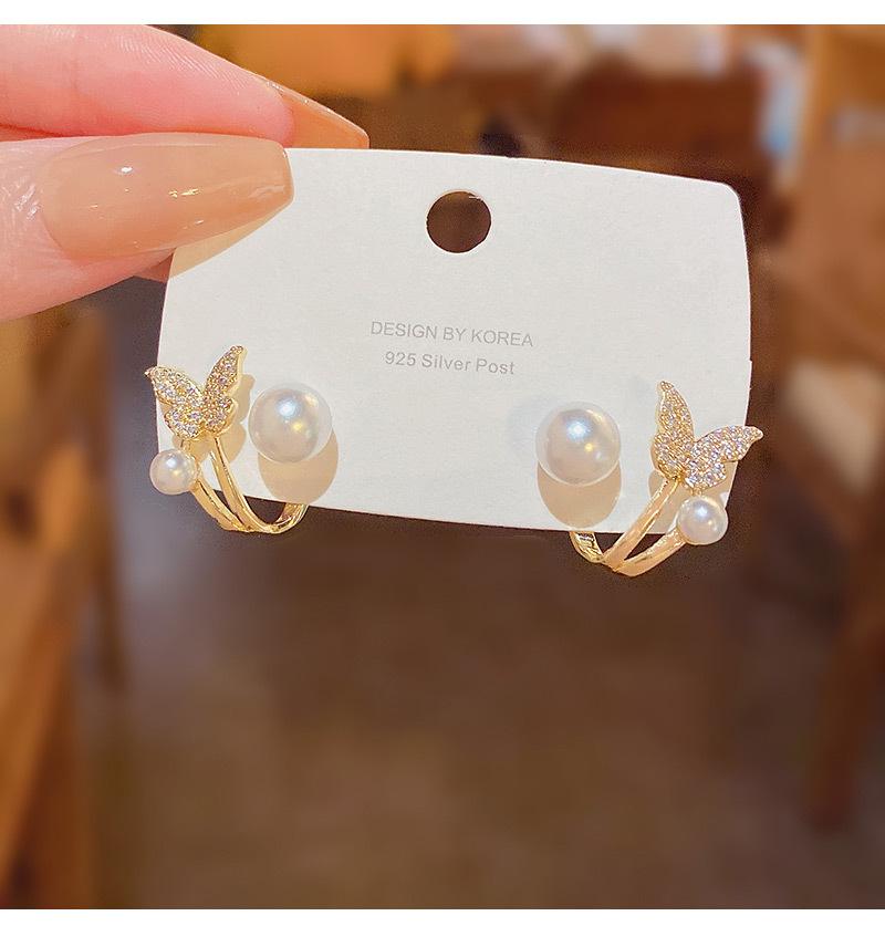 Compre S925 agulha de prata coreano nova chegada borboleta brincos de pérola leve luxo nicho high-end design sentido traseiro brincos pendurados brincos brincos no atacado no Joom.pro