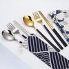 Black gold spoon and fork chopsticks three-piece set + Japanese cloth bag