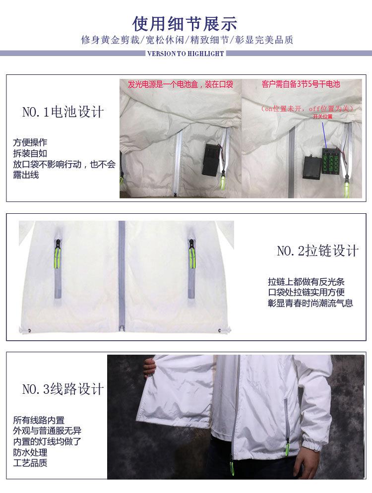 Esta jaqueta link é uma roupa luminosa lavável e lavável na máquina
