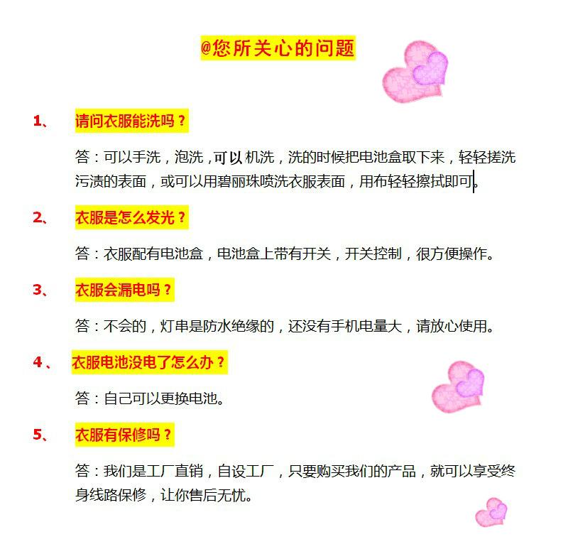 Especializada na produção e personalização de diversos adereços de palco, adereços de performance, boates, adereços eletrônicos recarregáveis de performance, adereços luminosos, roupas luminosas, luvas luminosas, óculos luminosos, violinos luminosos, capacetes luminosos, capacetes de laser, roupas de laser, luvas de laser, óculos de laser , violinos a laser,... personalizados de acordo com as necessidades do cliente