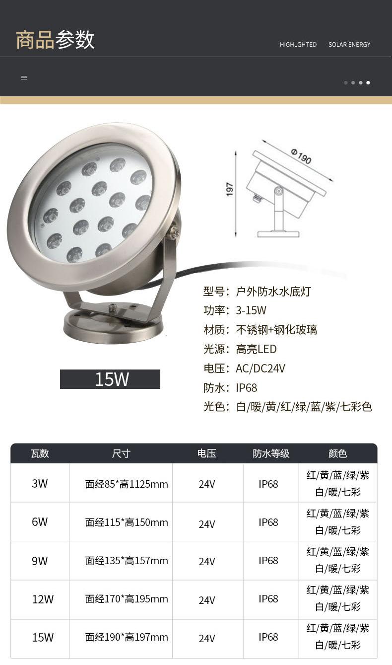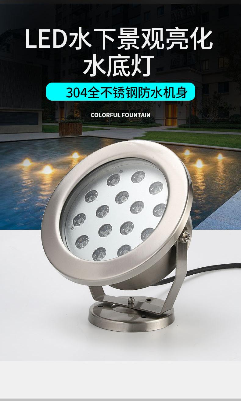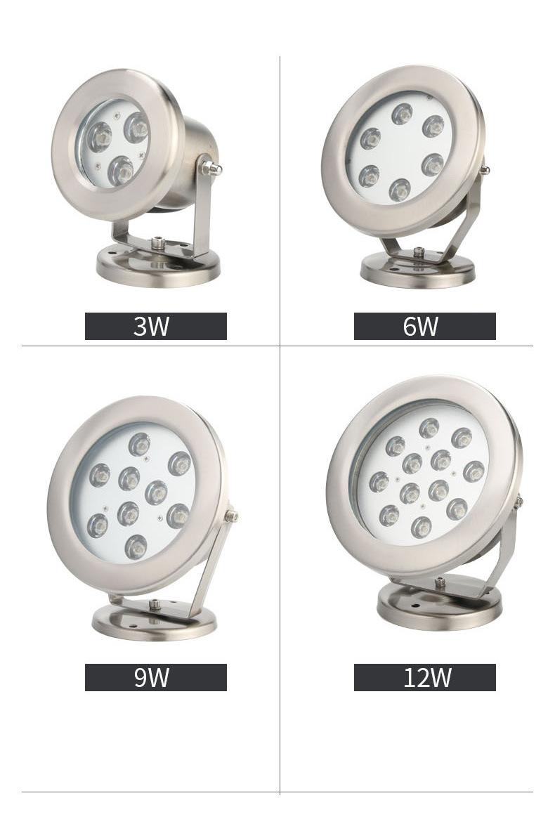 luz subaquática de LED à prova d'água para lago de peixes, luz subaquática para piscina, paisagem colorida de fonte, luz para piscina, 12V24V, luz subaquática de aço inoxidável