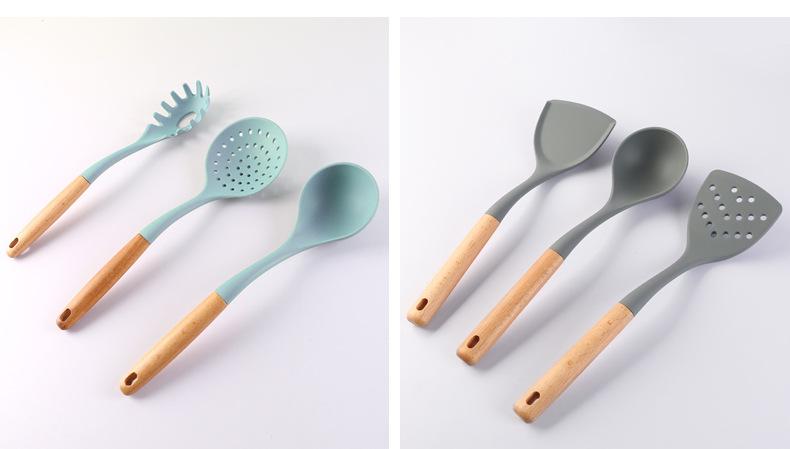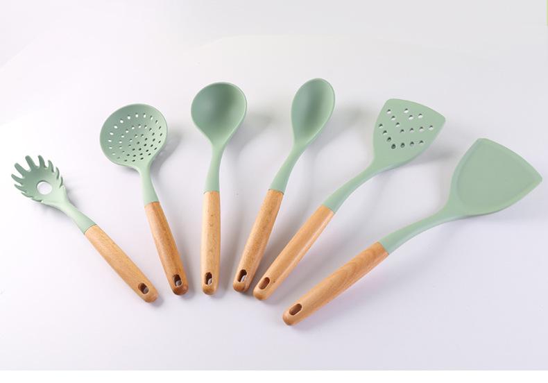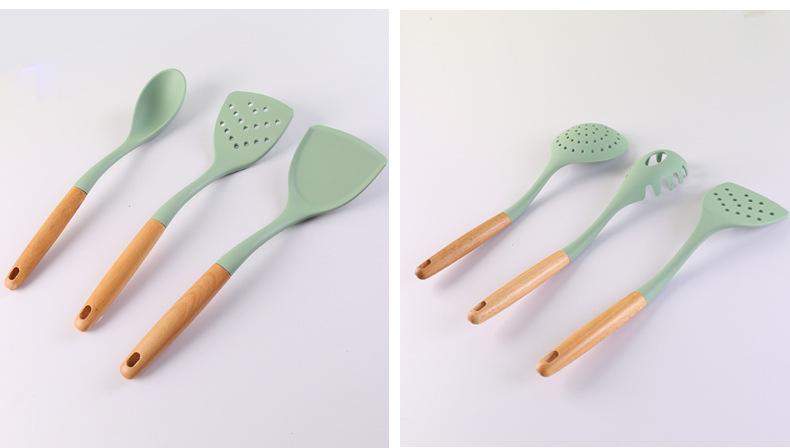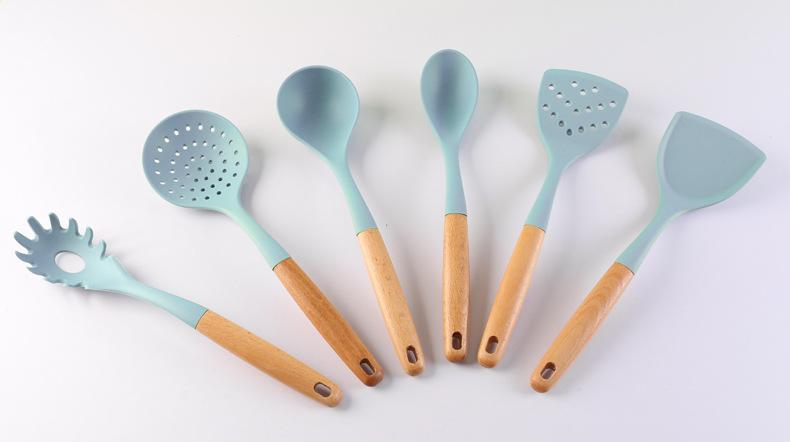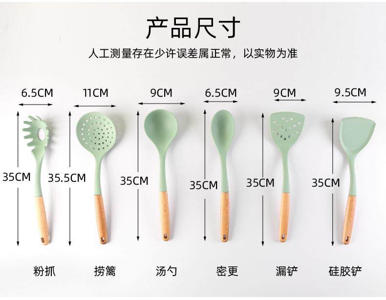 Nome: novos utensílios de cozinha de silicone nórdico com alças de madeira, conjunto duplo de 6 peças, espátula antiaderente de qualidade alimentar resistente a altas temperaturas e conjunto de utensílios de cozinha de colher