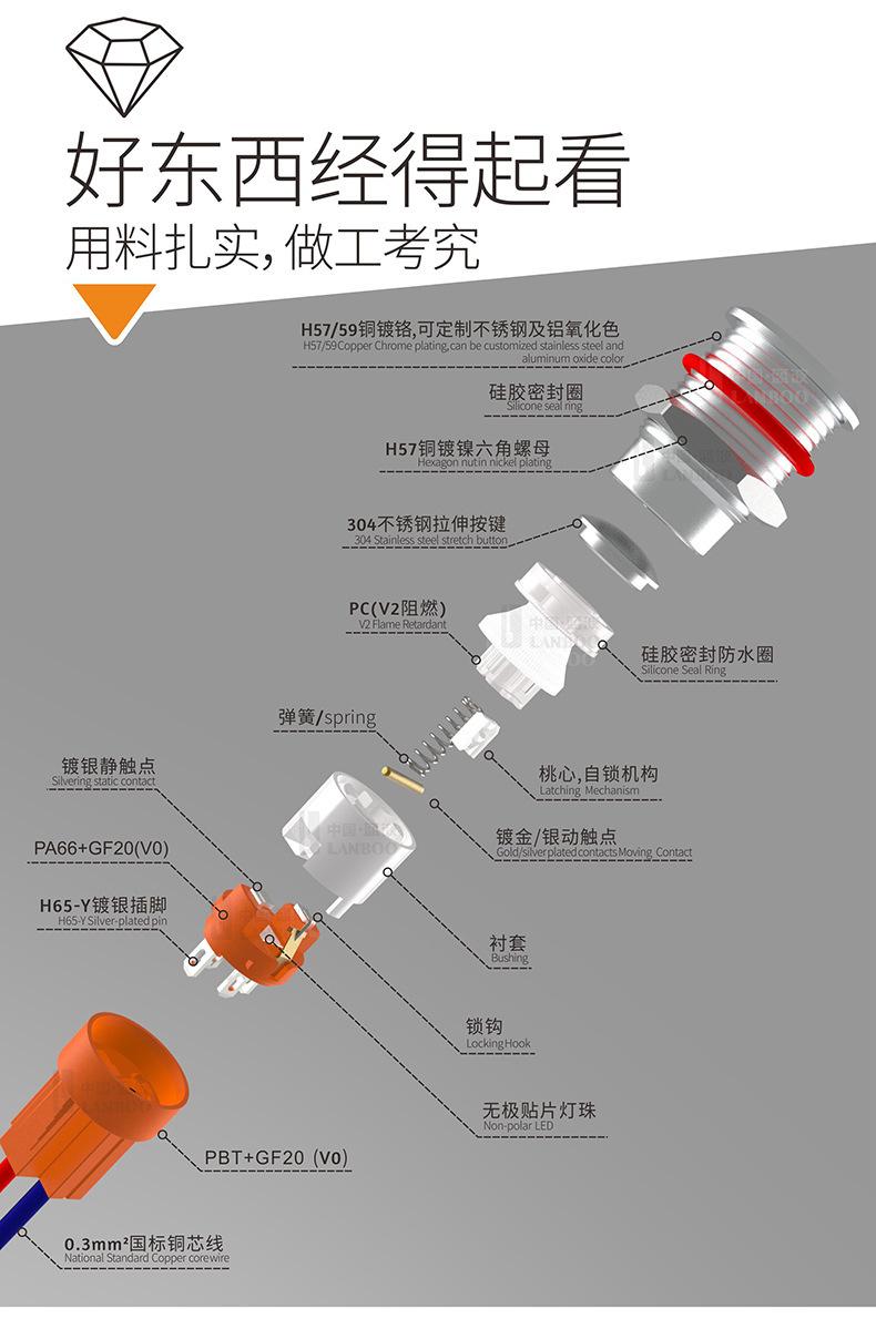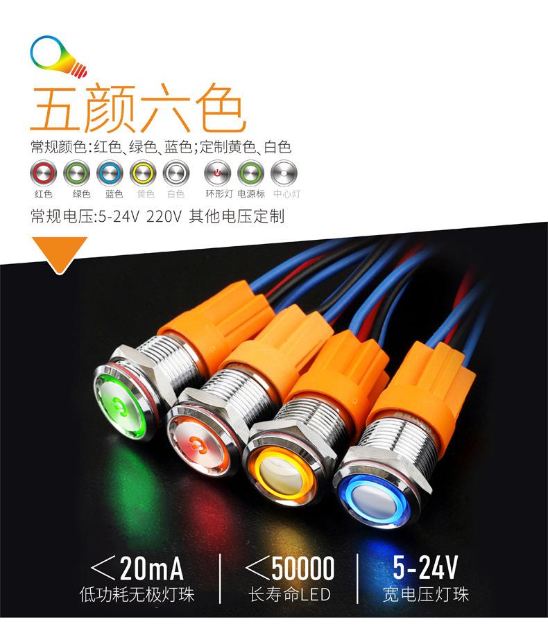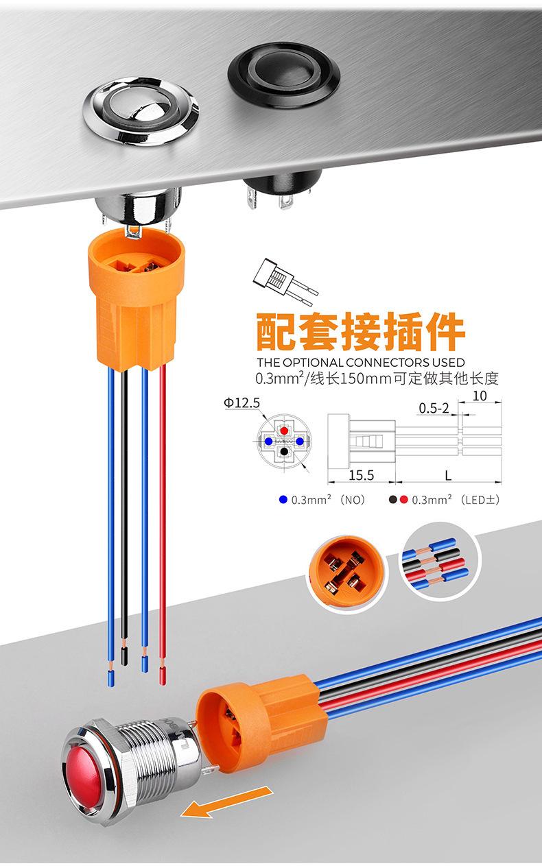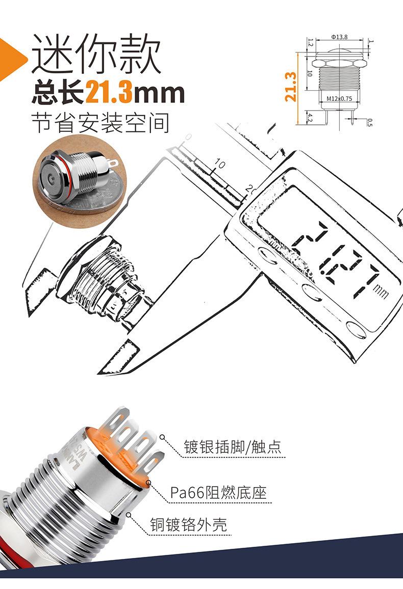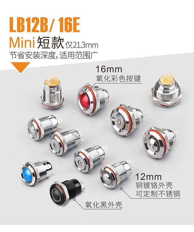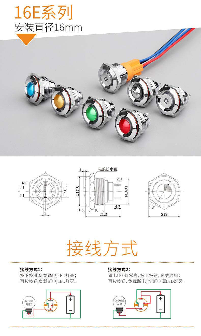 1. Este é um produto tipo E com abertura de 16 mm, interruptor de botão de metal com mini comprimento de 21,3 mm;