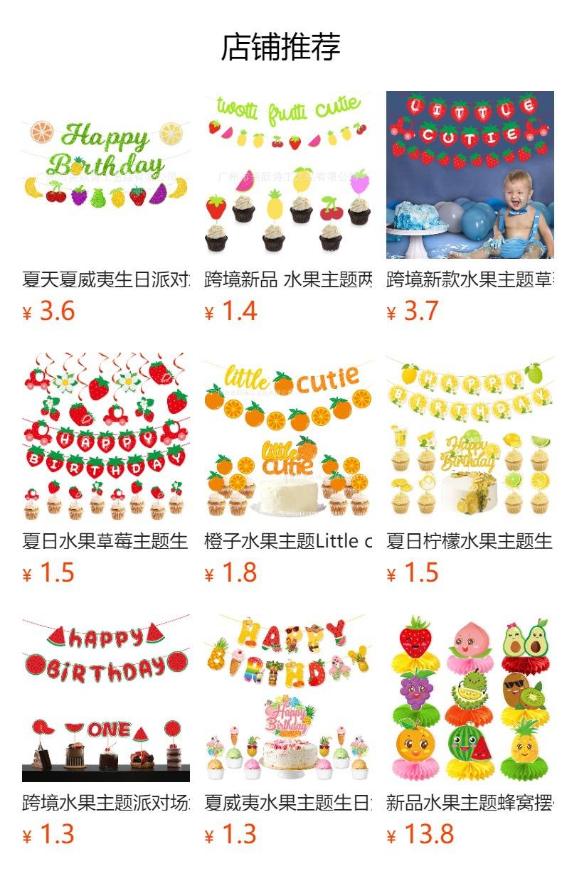 Uso do produto:Decoração de festa de aniversário de um ano com tema de frutas transfronteiriças, bandeira de puxar, decoração de festa temática, inserção de bolo, layout de decoração de cena de festa de chá de bebê.