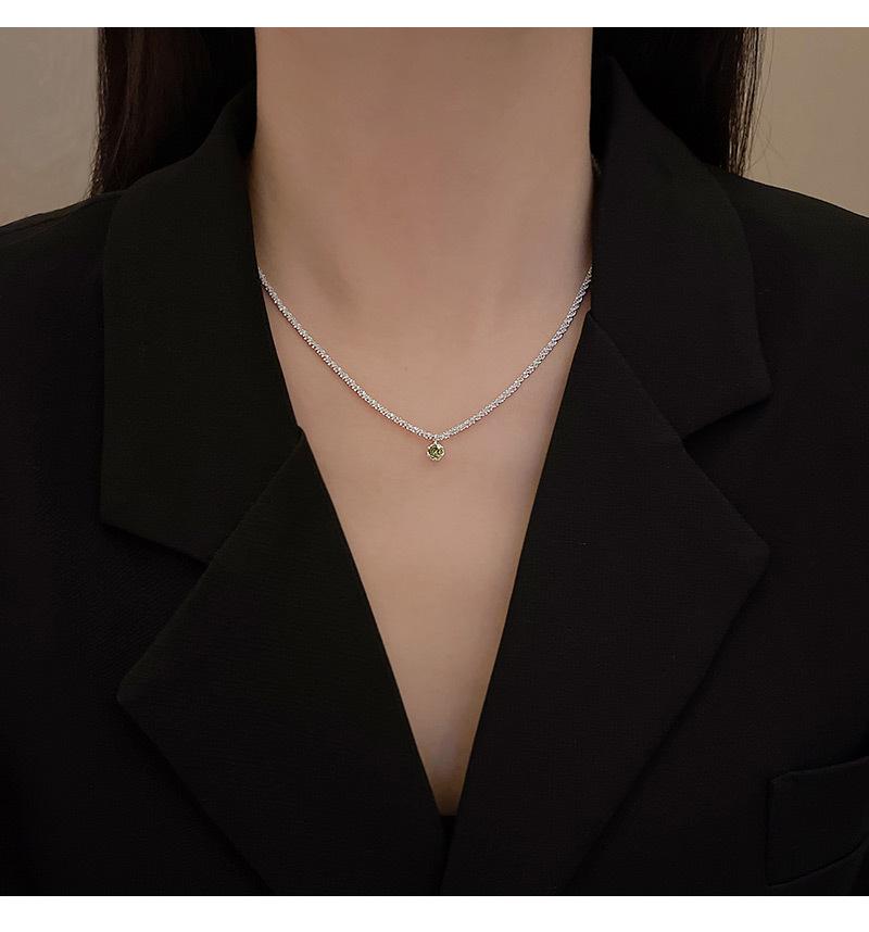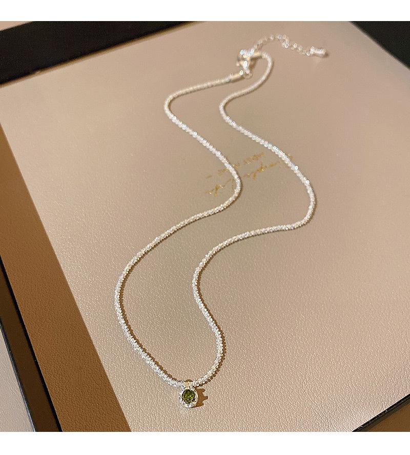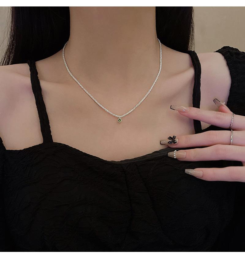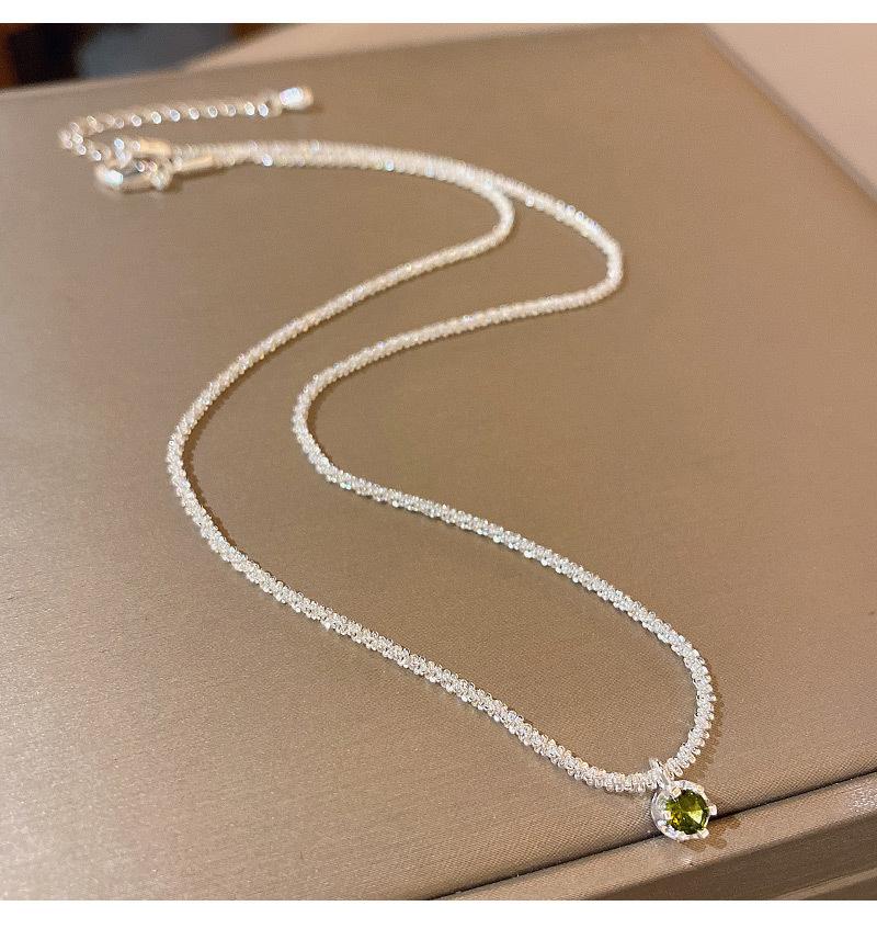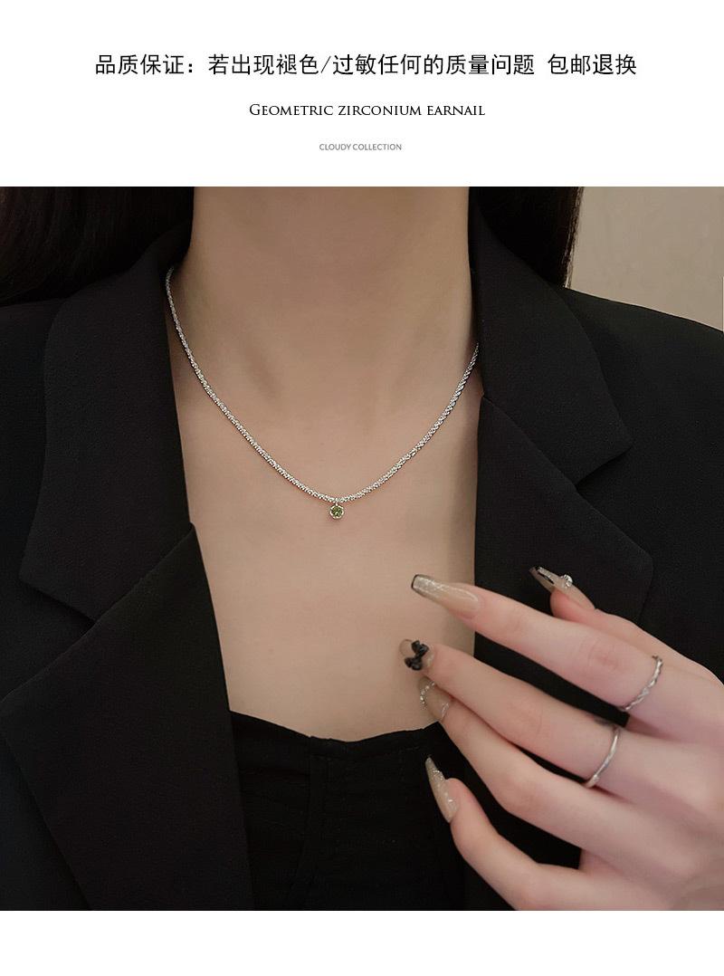 Compre Coreano Novo Colar Espumante Mulheres Luz Nicho de Luxo ins Estilo Internet Celebridade Mesmo Estilo Verde Zircon Chain no atacado no Joom.pro