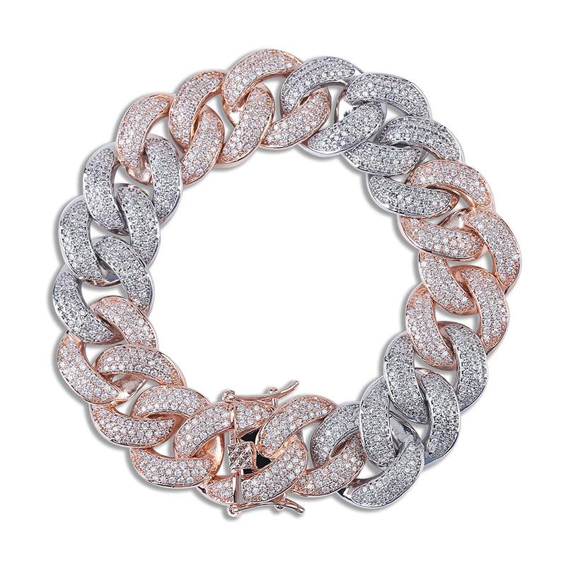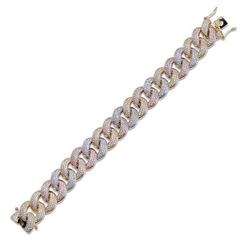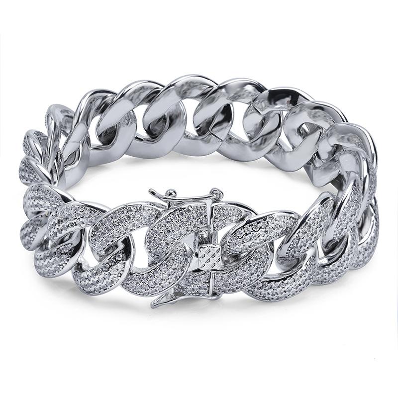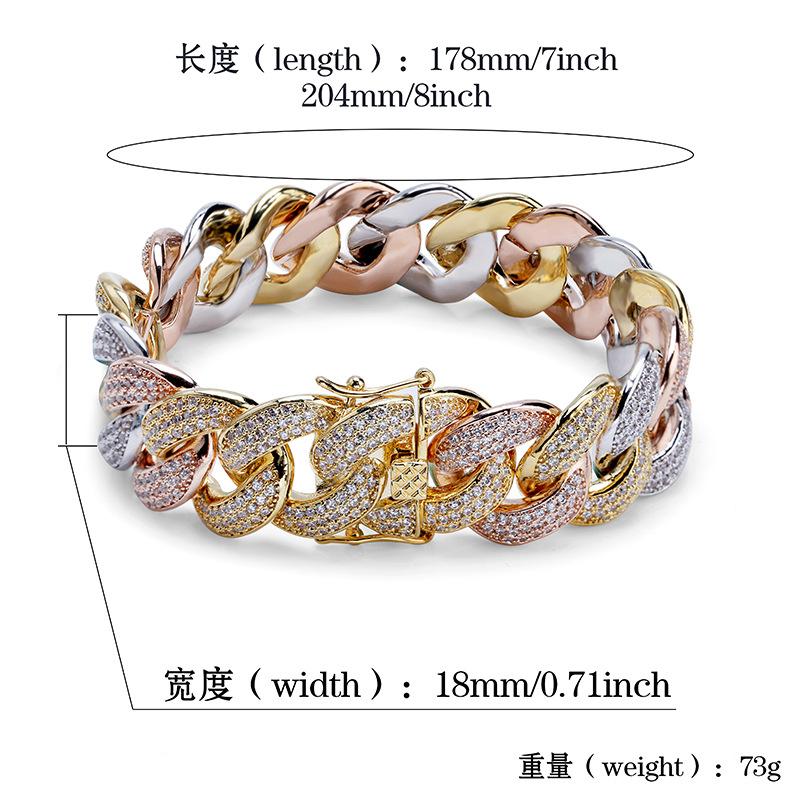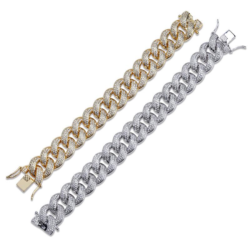 | Hiphop europeu e americano jóias fivela masculina miami cubana pulseira conjunto com zircão banhado a ouro hip-hop ferro bloqueio estilo pulseira |