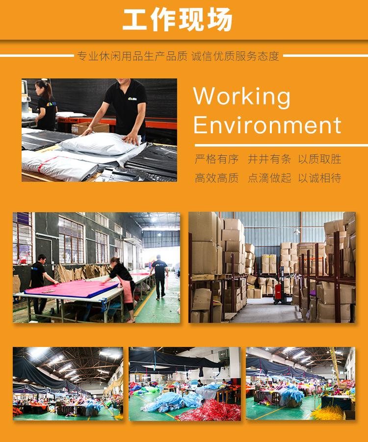 Nossa empresa é especializada em pesquisa, desenvolvimento e produção de diversos tipos de barracas infantis, barracas de praia, barracas para animais de estimação, etc. A área fabril é de 10.000m2, com mais de 200 funcionários na linha de costura. Temos estoque suficiente de matérias-primas e estamos equipados com controle de qualidade em tempo integral para garantir a qualidade. Congratulamo-nos com parceiros para inspecionar a fábrica. Endereço de fábrica:Nº 1, Zona Industrial de Gumashan, cidade de Wangzhai, condado de Wuyi.