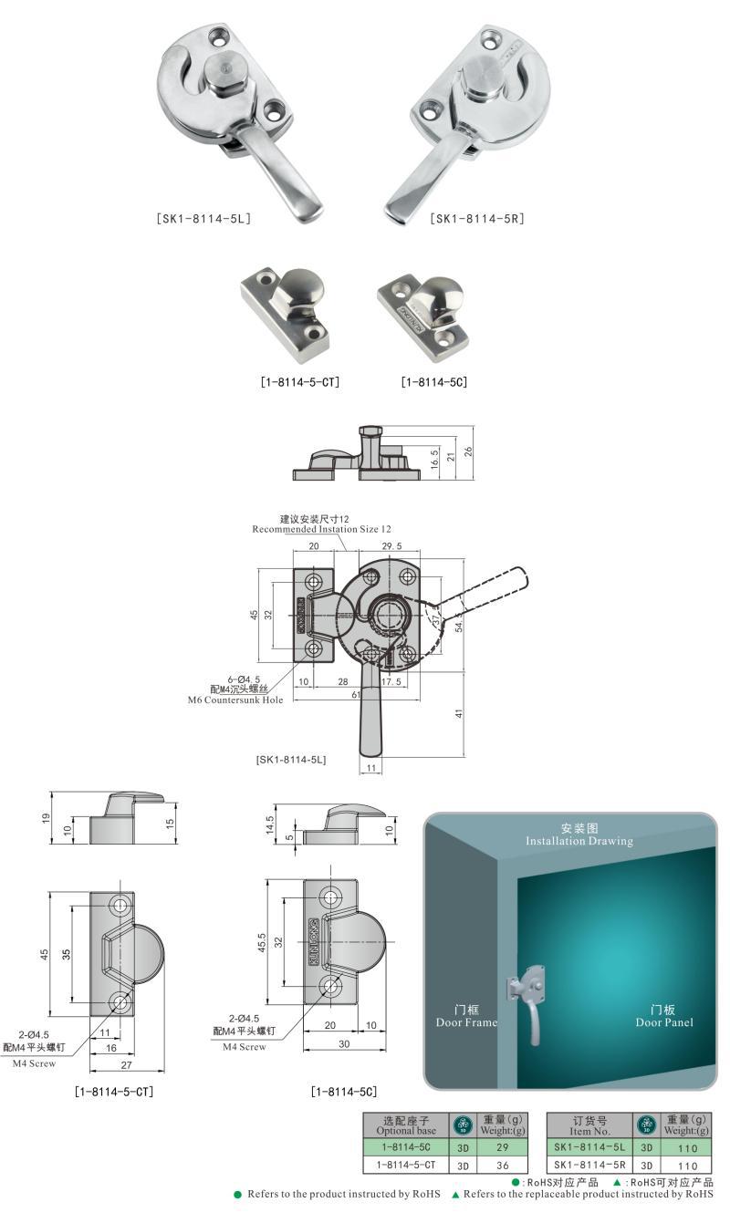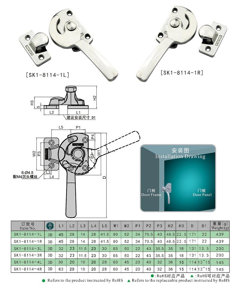 Shangkun SK1-8114-6R maçaneta de porta fechada de aço inoxidável caixa de equipamento de freezer caixa de teste de forno pequeno alça de aperto exibição do produto: