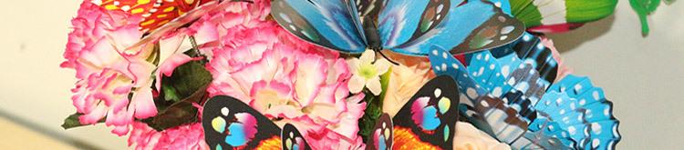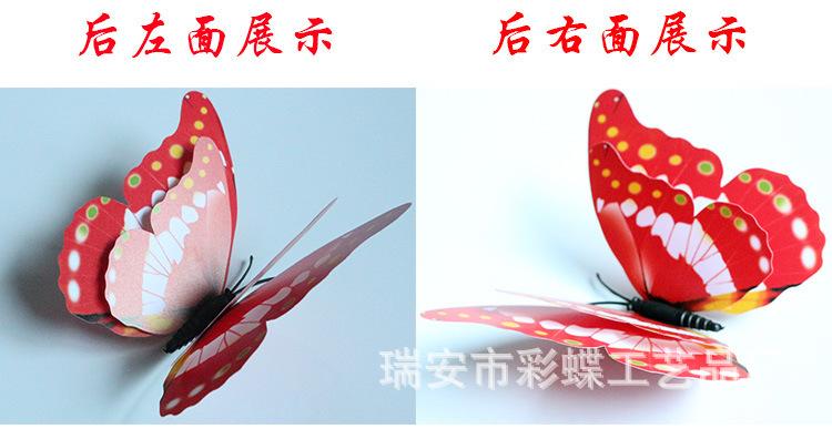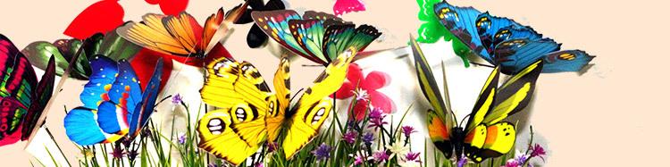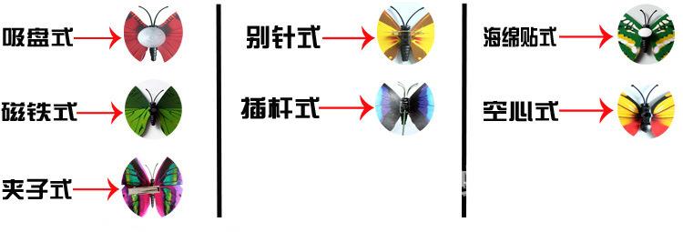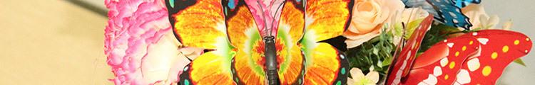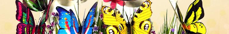 Las mariposas simuladas se basan en mariposas reales, con el mismo patrón en ambos lados. Se pueden usar para decoración, paisajismo, juegos y como regalo. Son muy ornamentales y pueden usarse para decorar cualquier lugar. Son económicas, tienen un amplio mercado y una propuesta de venta novedosa y única.