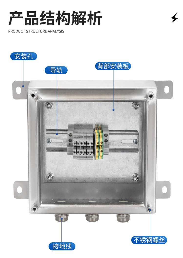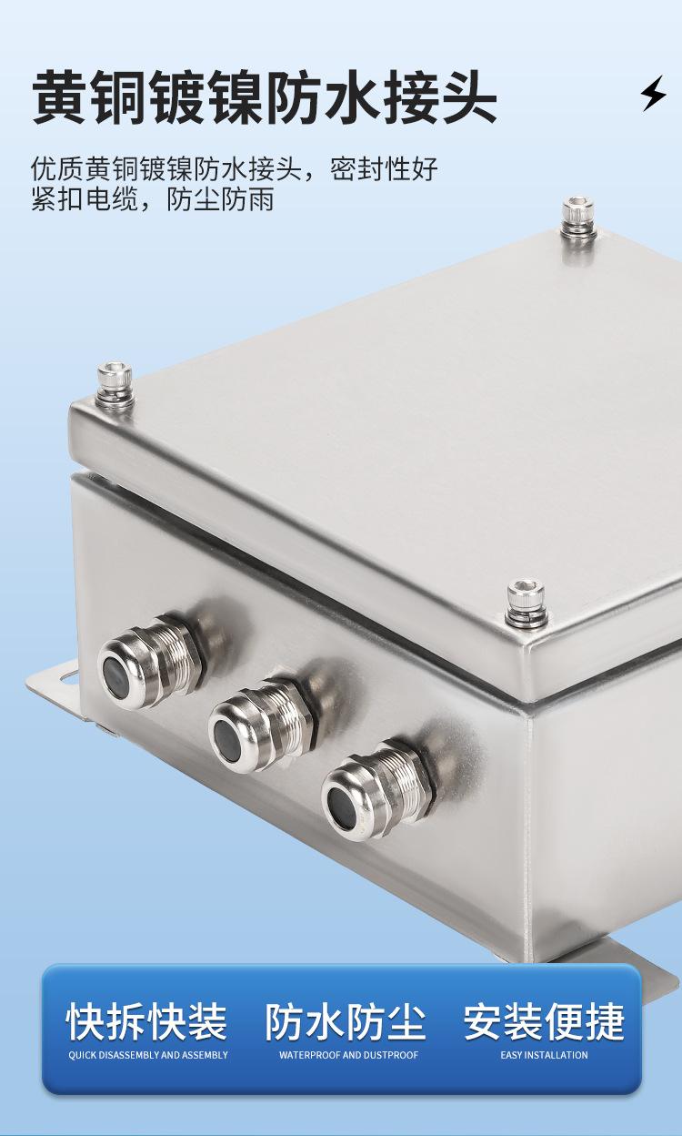 Este producto es una caja de conexiones de acero inoxidable, ideal para entornos hostiles como túneles y sótanos. Disponible en stock. El precio no incluye impuestos. Para obtener la factura, contacte con atención al cliente. El conector impermeable M20 está incluido por defecto. Los terminales británicos se venden por separado. ¡Tenga en cuenta si le importa! Se puede personalizar cualquier tamaño. Gran cantidad y buen precio.