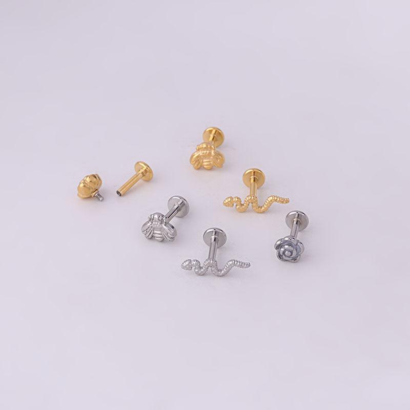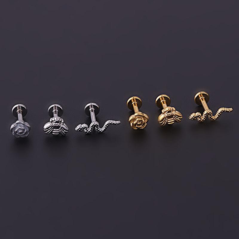 | Nome do Produto | 16GX6MM aço inoxidável flor inseto cobra forma rosca interna orelha osso unha lábio unha piercing jóias comércio exterior europeu e americano |