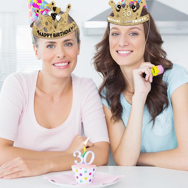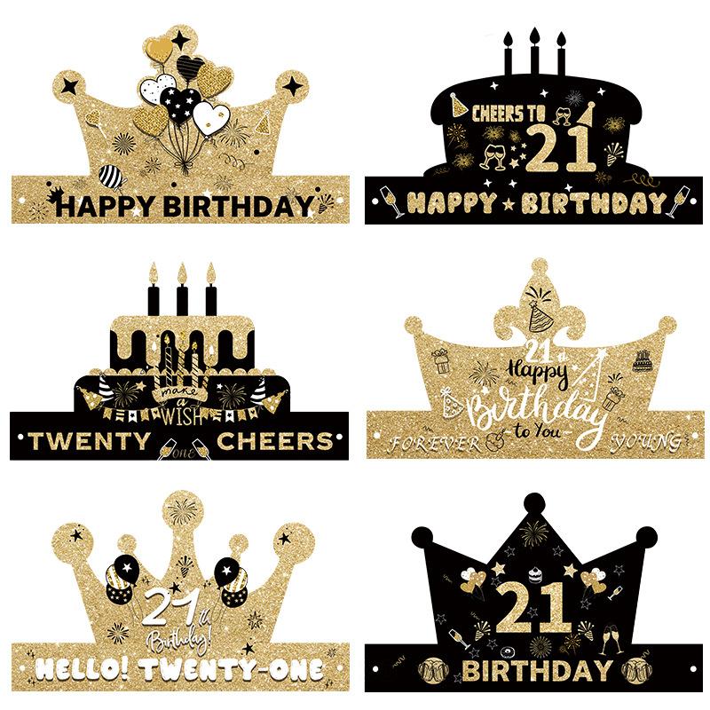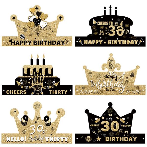 Sombrero de papel de decoración de fiesta de cumpleaños transfronterizo 18 21 30 40 50 60 70 80 años corona sombrero de papel