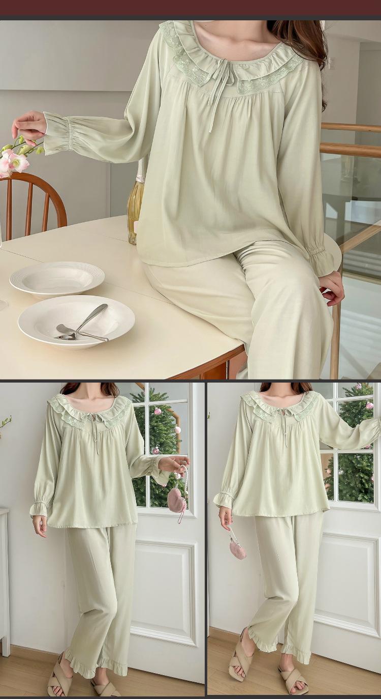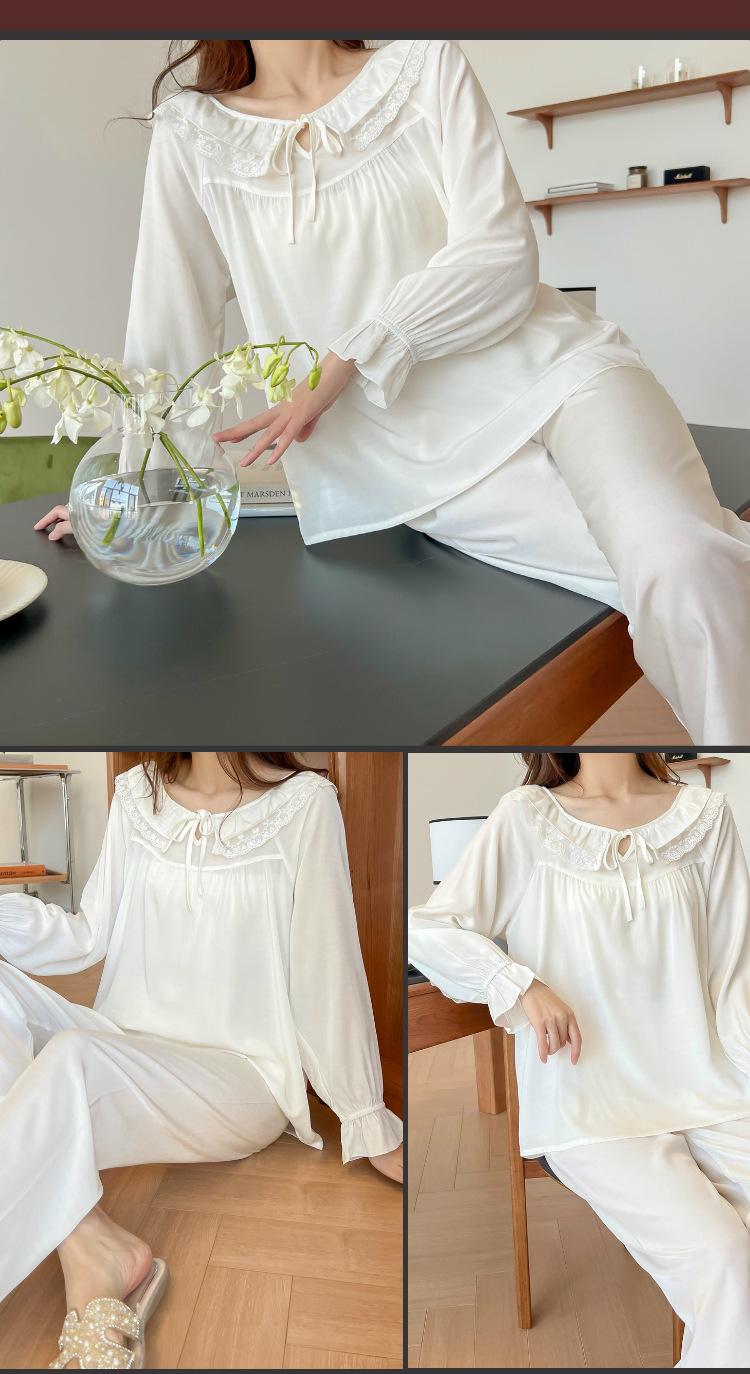 Este estilo é simples e elegante no geral, com gola redonda clássica e renda na gola, o que deixa a clavícula mais sexy.