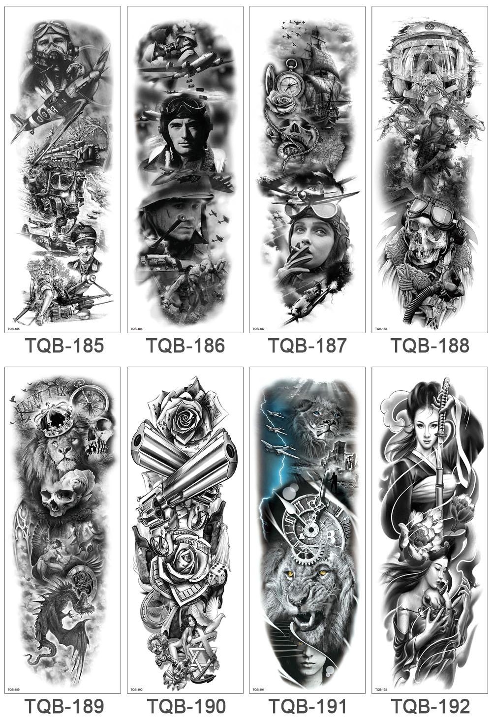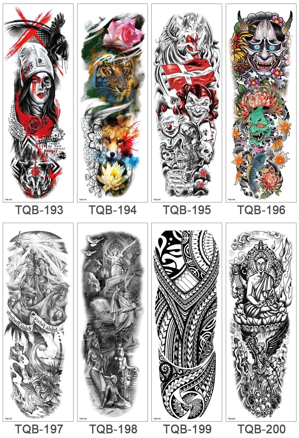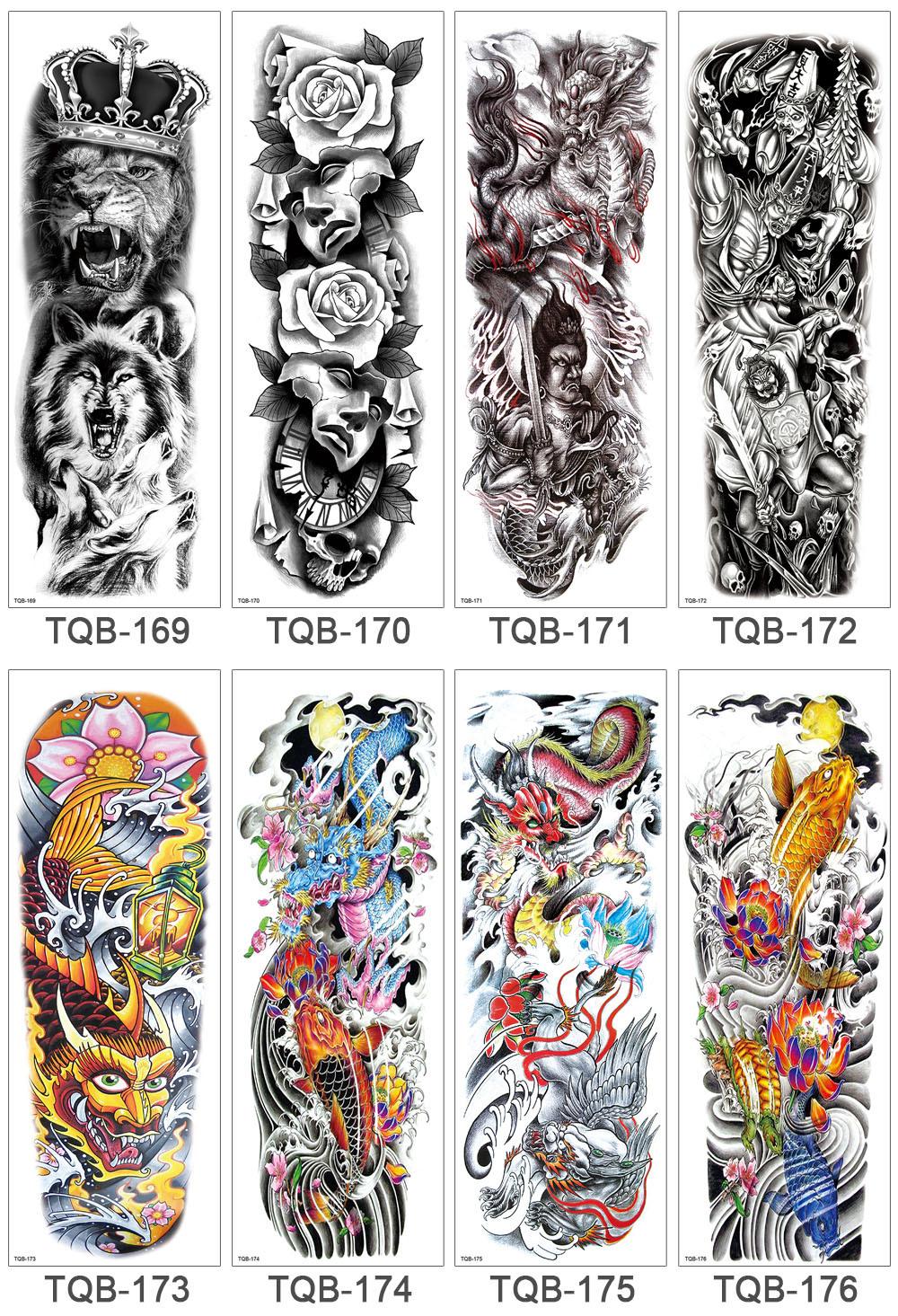 Novos adesivos de tatuagem de braço inteiro Koi carpa dragão gueixa prajna caveira flor grande braço inteiro adesivos de tatuagem à prova d'água personalizados proteção ambiental europeia e americana adesivos de transferência de Feng Shui chinês