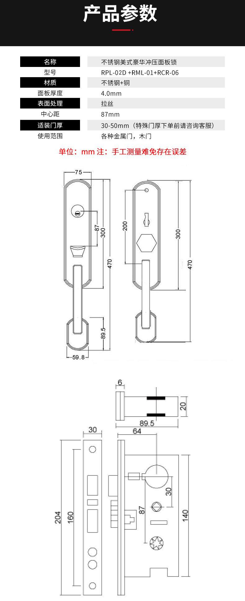 5. Tamanho do corpo de bloqueio: corpo de bloqueio grande de luxo americano de 64 * 87 mm