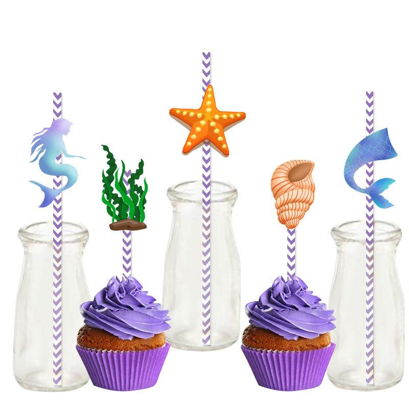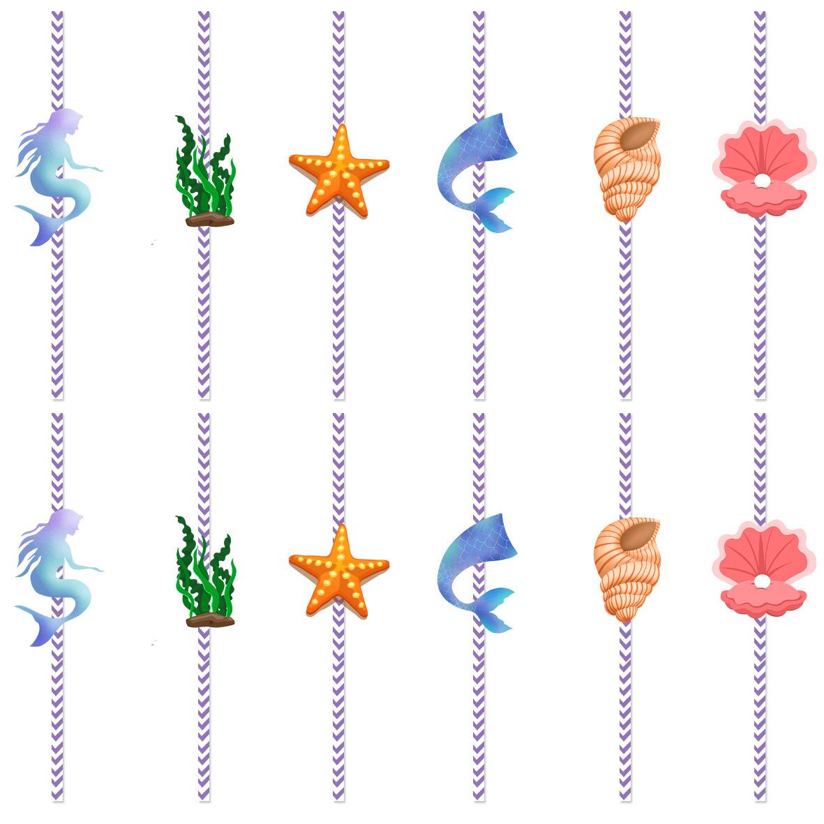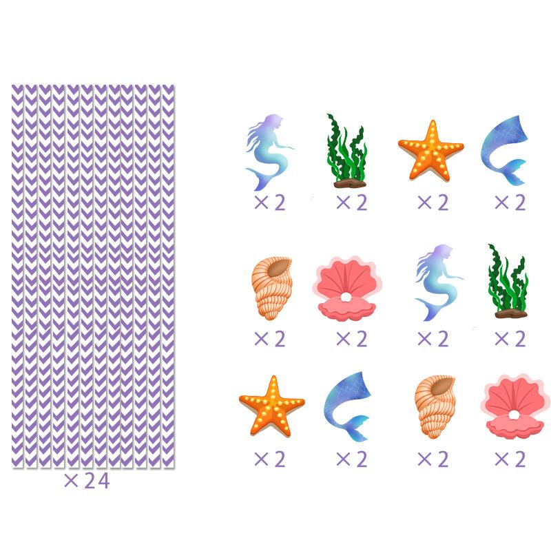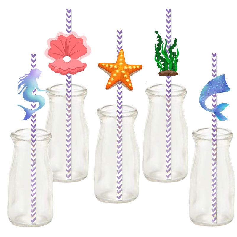 Canudos descartáveis decorativos transfronteiriços da Amazon 24 peças bandeira de palha decorativa para festa de sereia oceano atacado