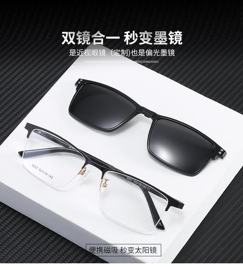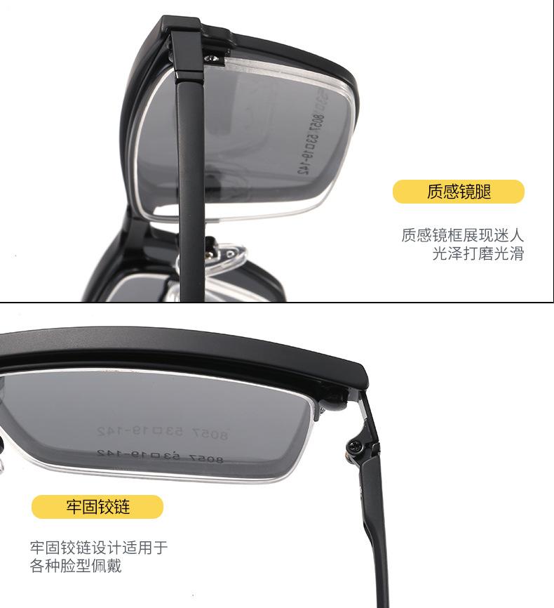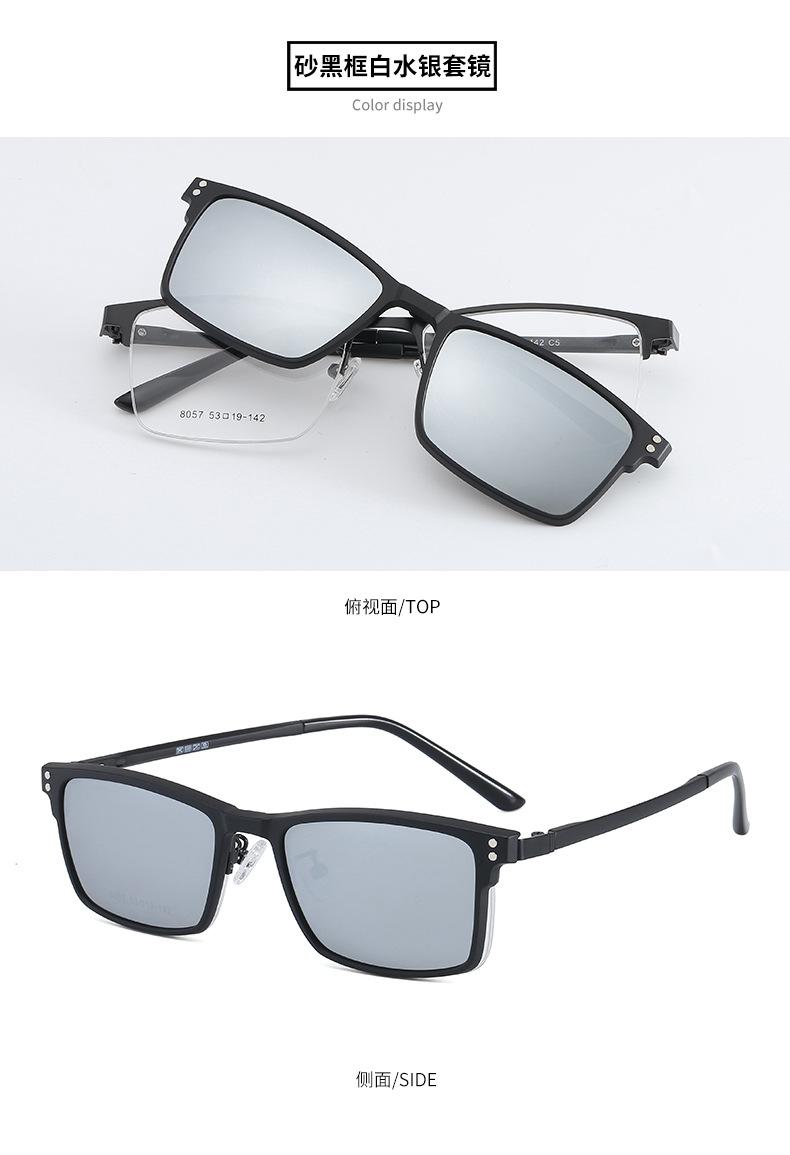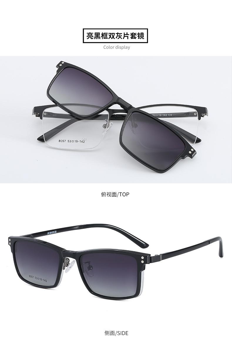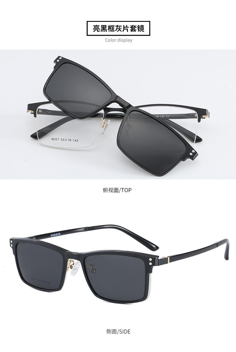 A armação dos óculos de sol deste conjunto magnético é feita de aço plástico, as lentes são polarizadas e a armação dos óculos ópticos na parte inferior é feita de aço inoxidável. A aparência geral é sofisticada e elegante. Os óculos do site são vendidos separadamente sem estojos de óculos. Se você precisar de estojos de óculos, acesse o link da embalagem: